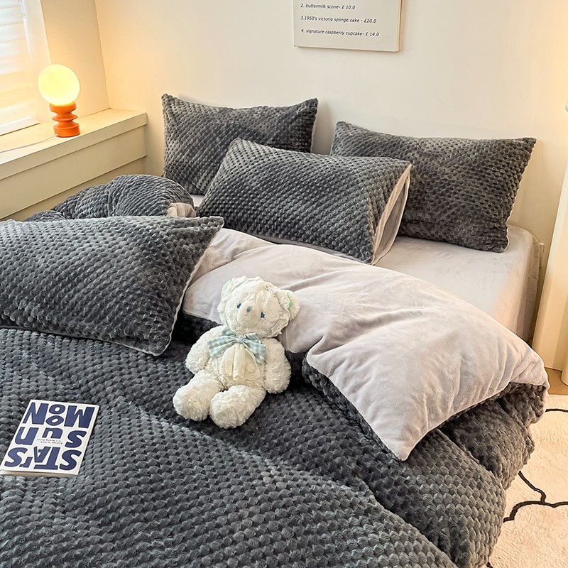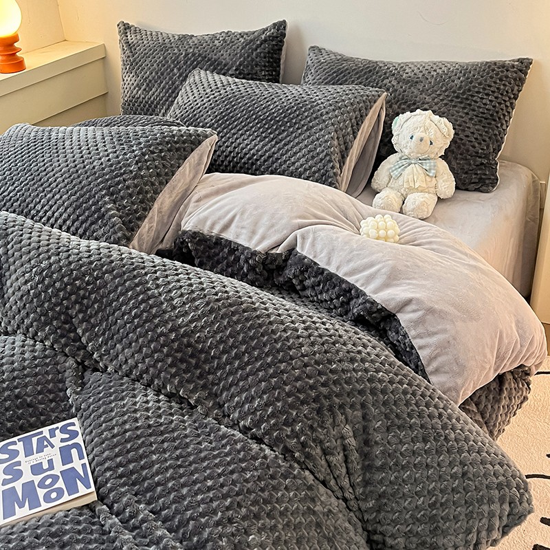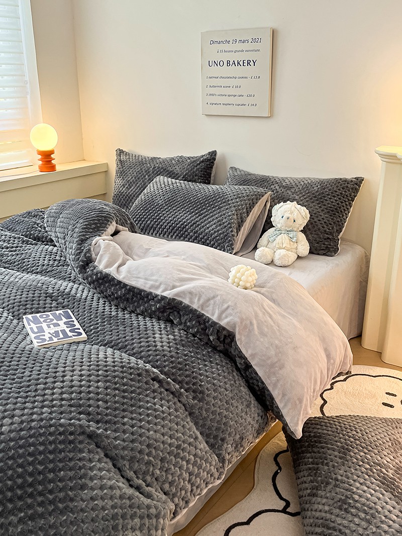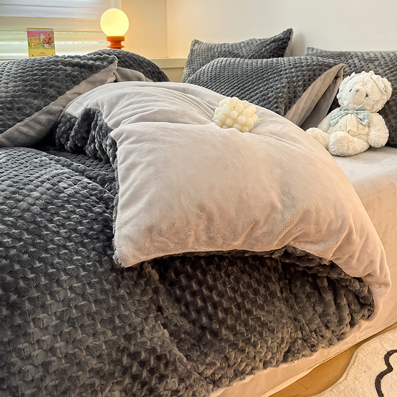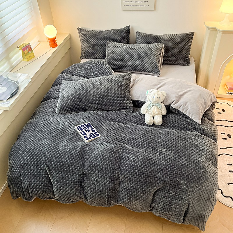 商品名称:澳梵家居 2023新款印花豆豆绒牛奶绒四件套 豆豆-灰色