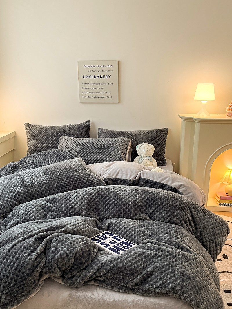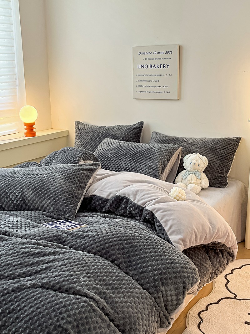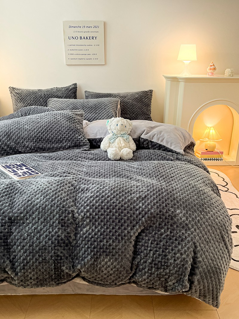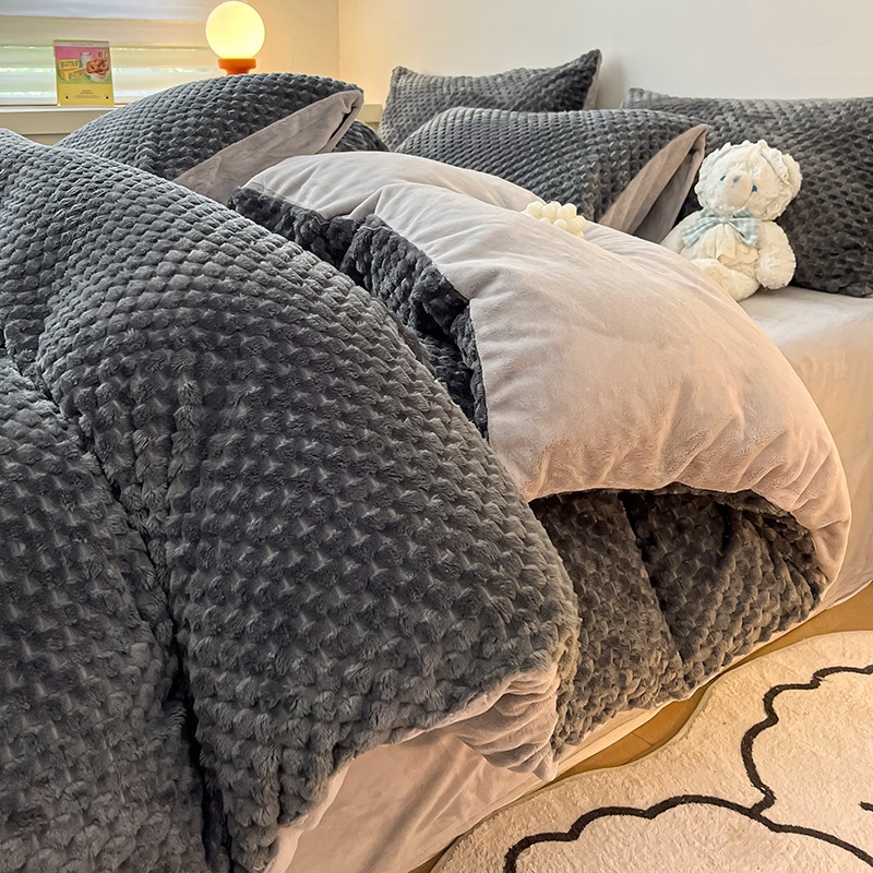商品名称:澳梵家居 2023新款印花豆豆绒牛奶绒四件套 豆豆-灰色