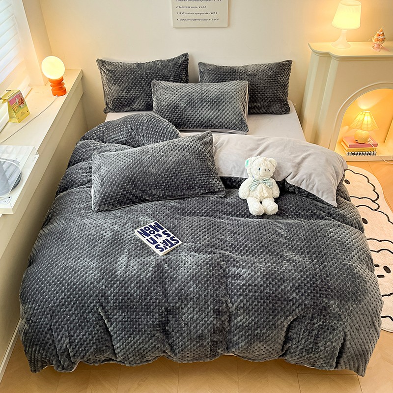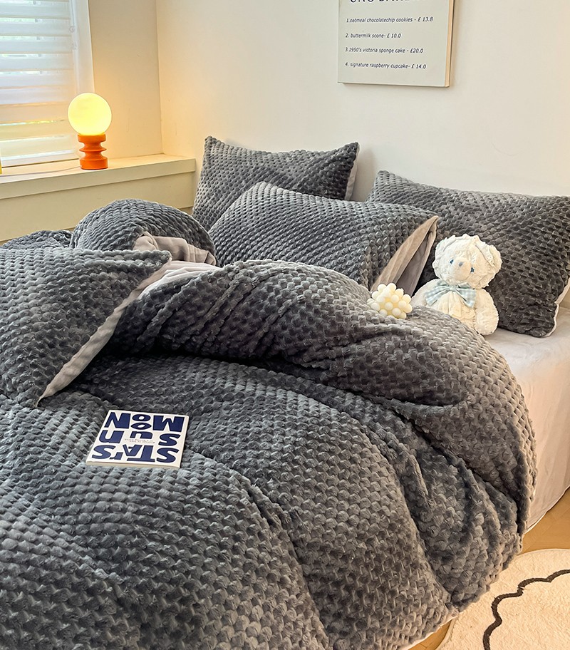 澳梵家居 2023新款印花豆豆绒牛奶绒四件套 豆豆-灰色