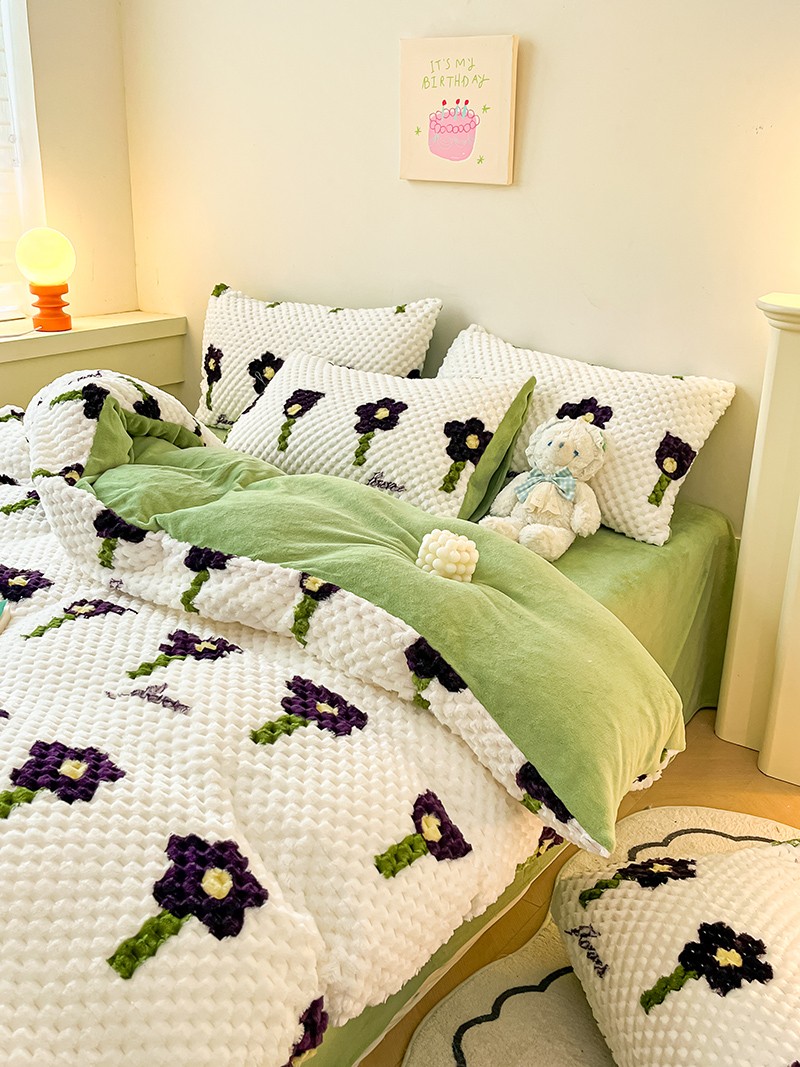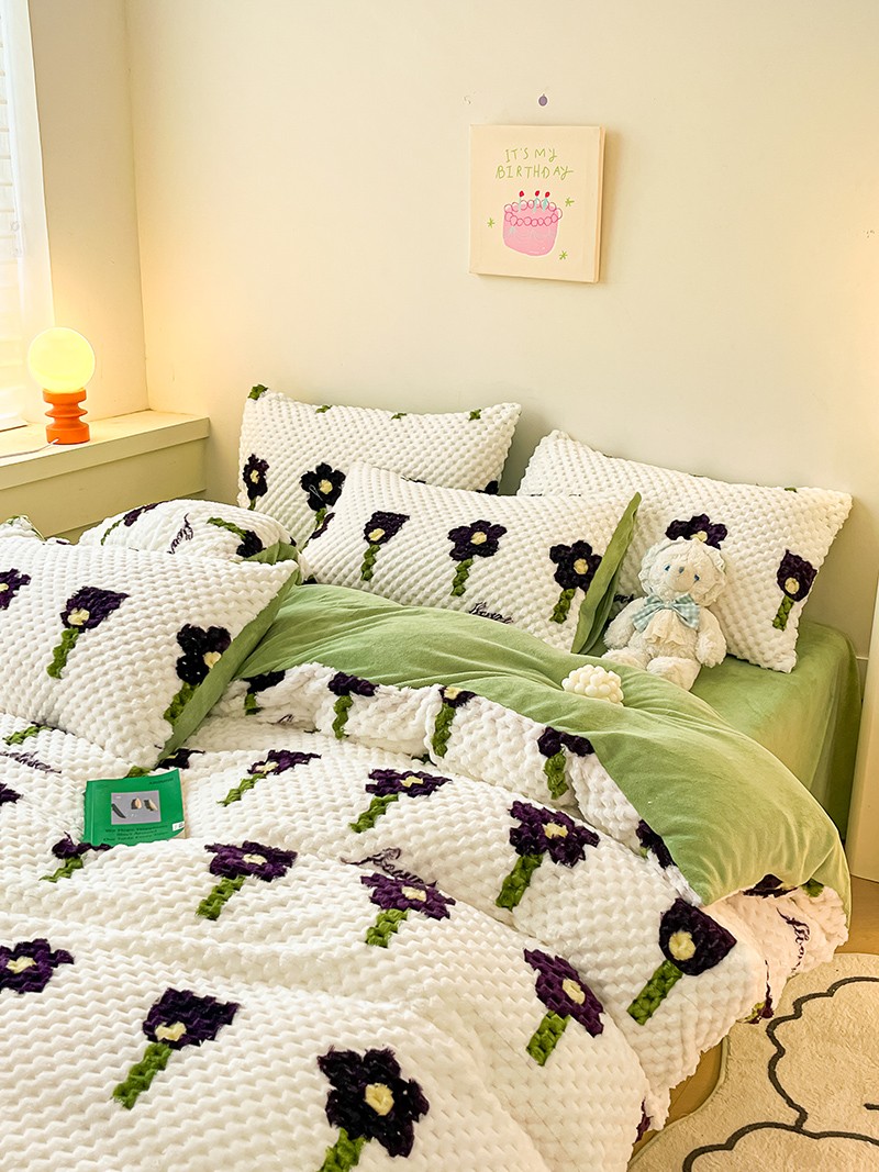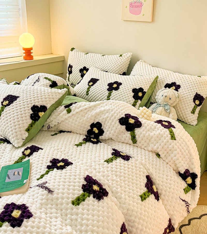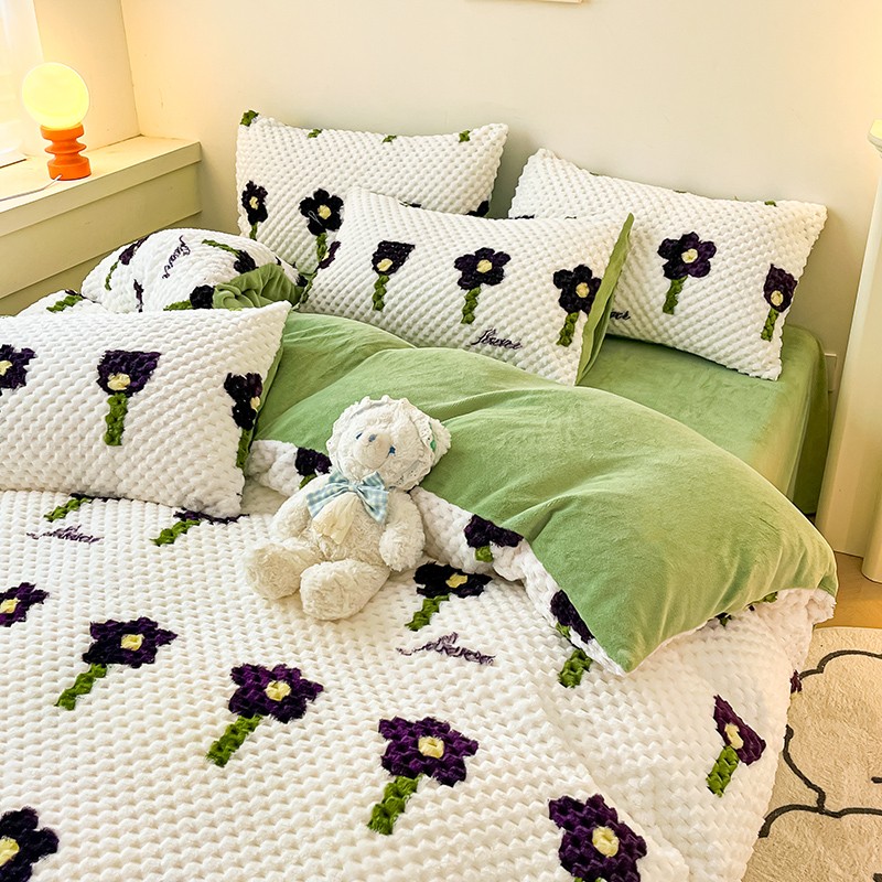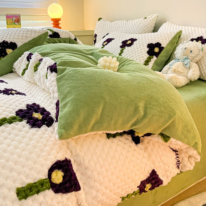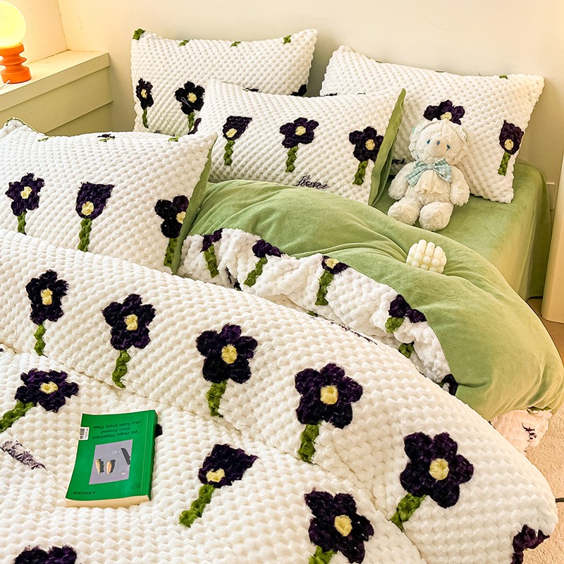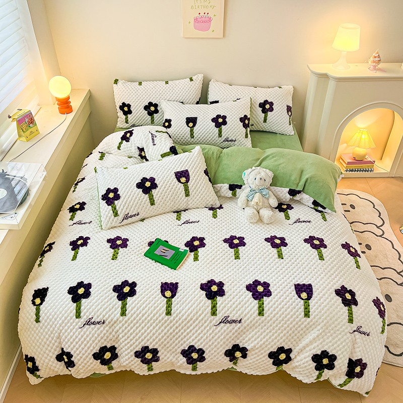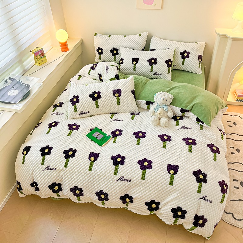 澳梵家居 2023新款印花豆豆绒牛奶绒四件套 小花花