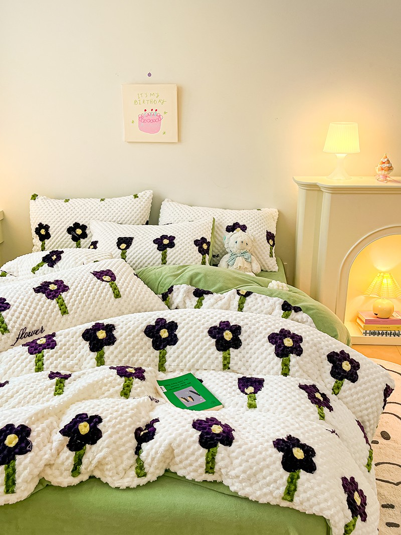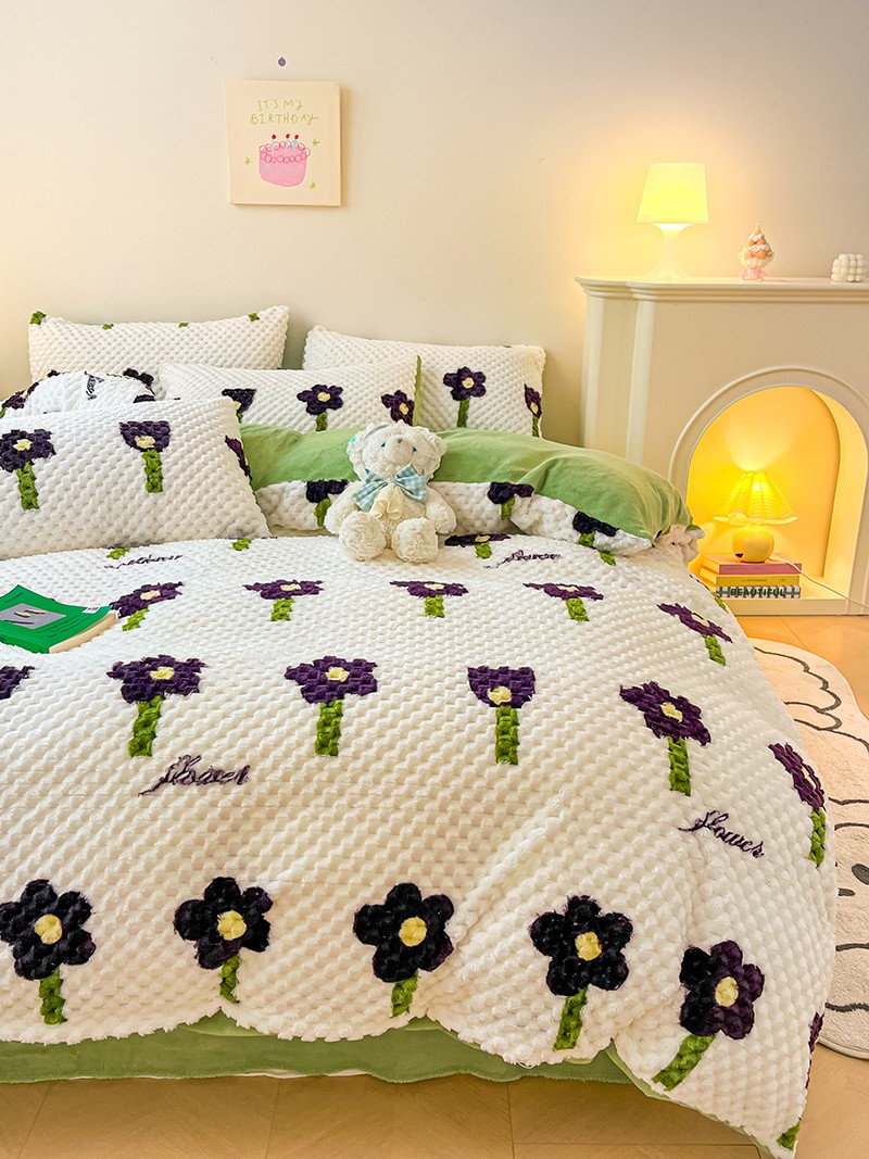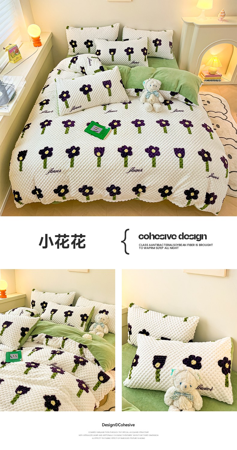 商品名称:澳梵家居 2023新款印花豆豆绒牛奶绒四件套 小花花