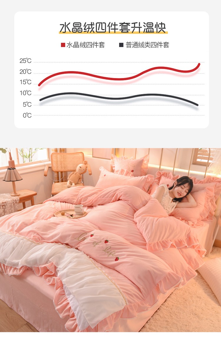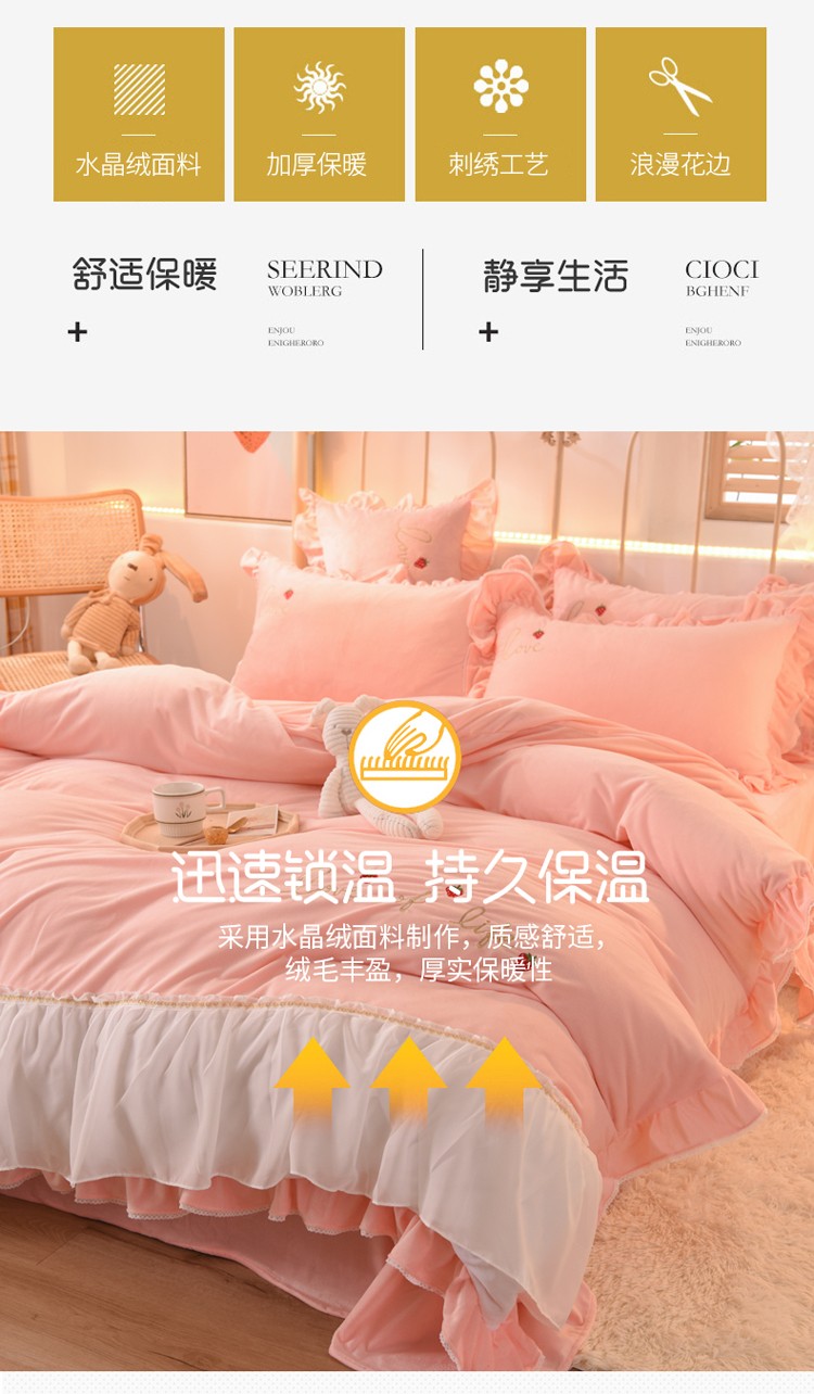 商品名称:2023新款公主风倾城牛奶绒四件套 倾城-玉色
