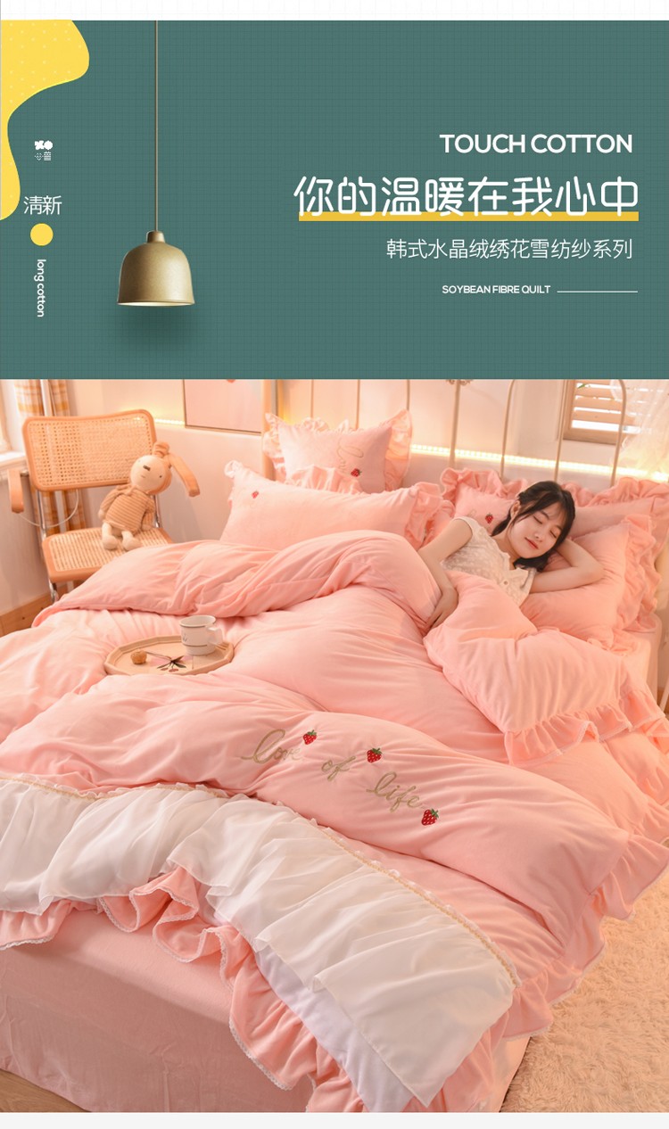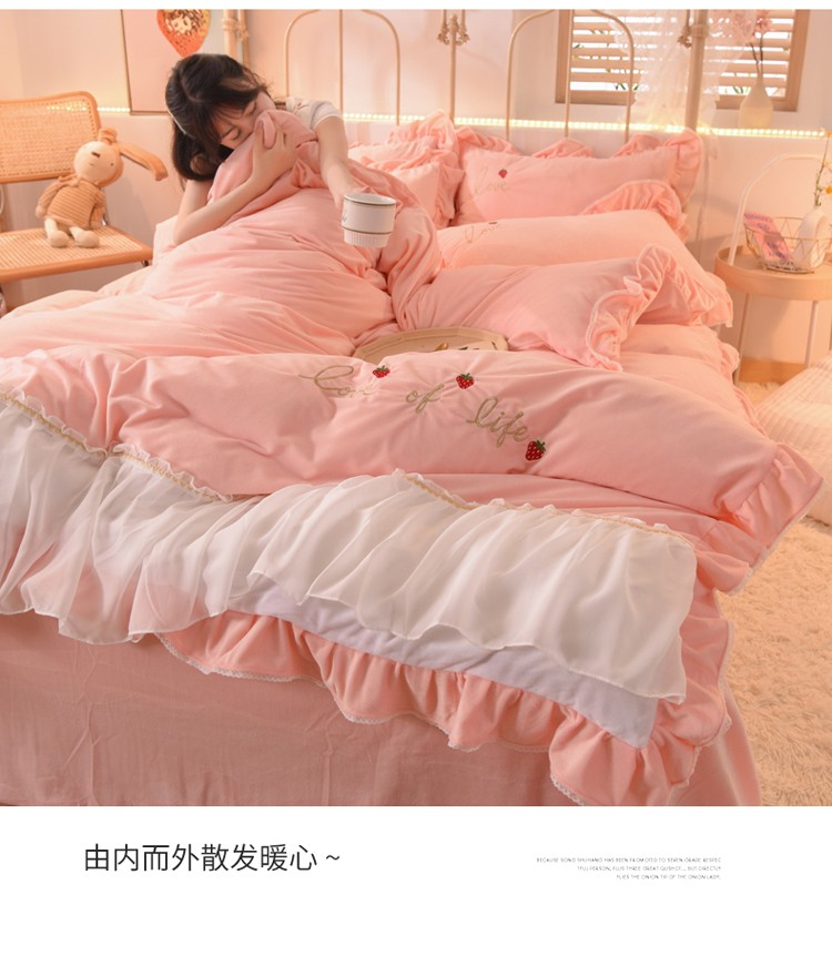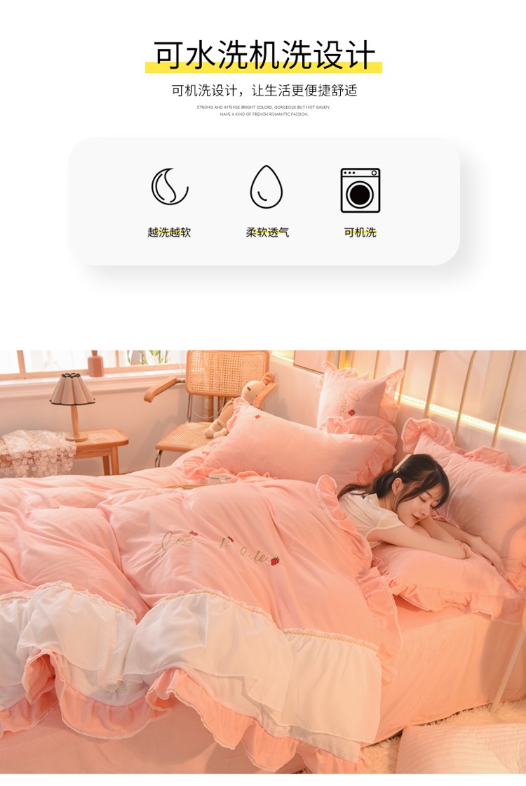 (总)丝印良品 2025新款加厚牛奶绒刺绣床裙款四件套,草莓-奶白粉,草莓-奶白,草莓-湖水蓝,草莓-落樱粉,草莓-薰衣紫