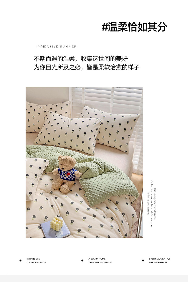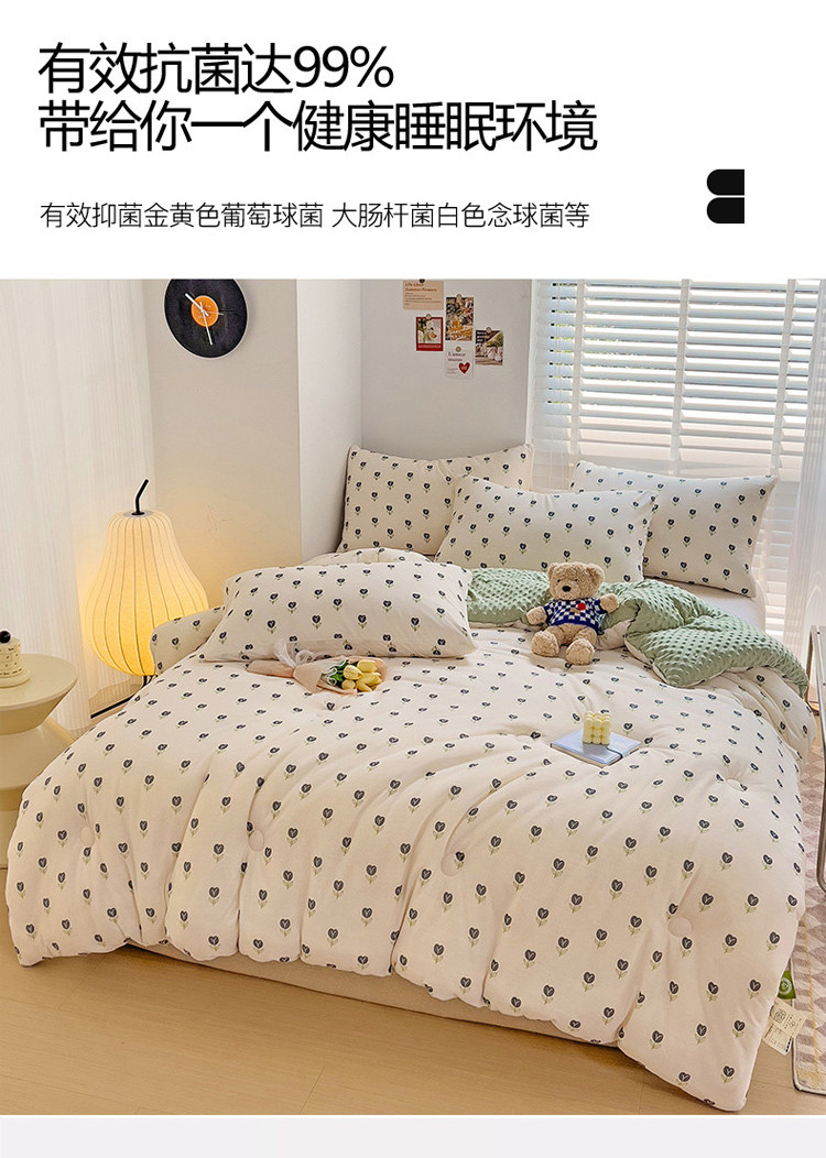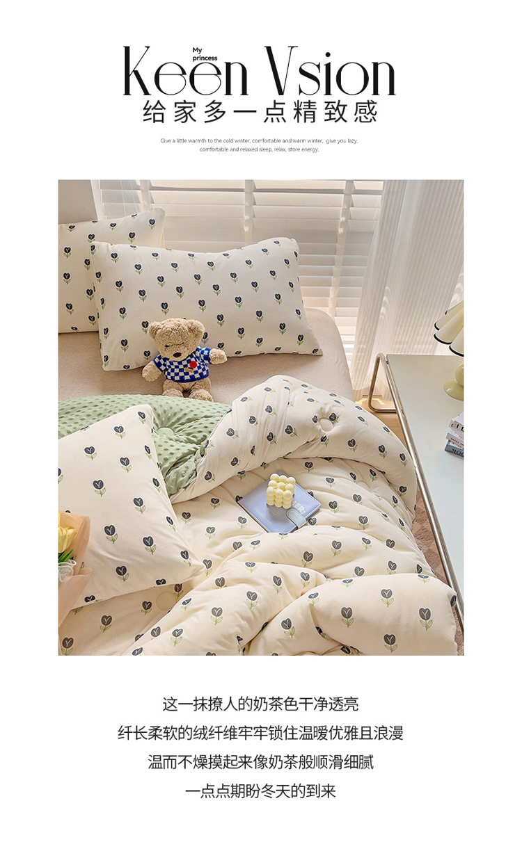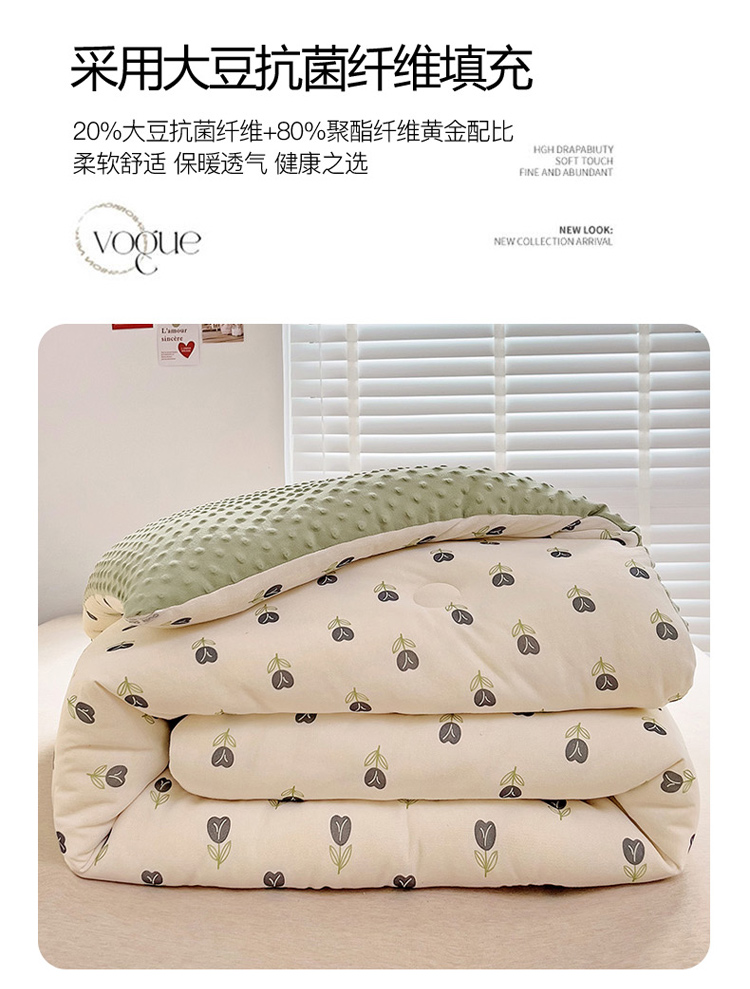 • 91家纺网 家纺一手货源 找家纺 寐居 2023新款水洗双层纱+豆豆绒 A类大豆抗菌被花梦