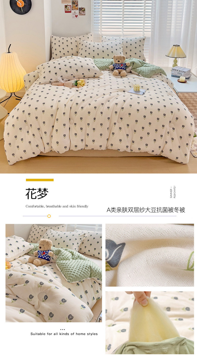 寐居 2023新款水洗双层纱+豆豆绒 A类大豆抗菌被花梦