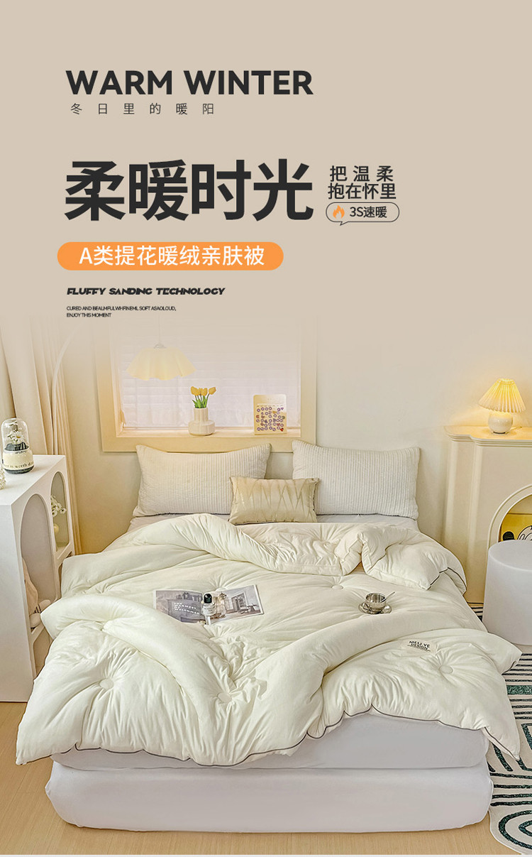 商品名称:寐居 2023新款提花暖绒亲肤被米白