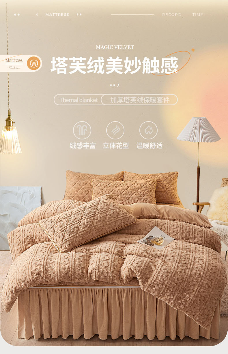当前位置: 91家纺网 > 商品网购 > 床品套件 > 四件套 > 牛奶绒四件套 > 恋尚 2023新款塔芙绒床笠加床裙四件套可脱卸款 塔芙绒-玉色