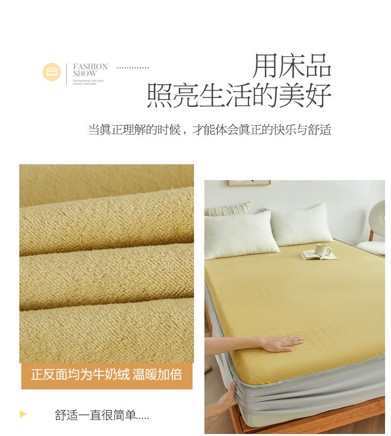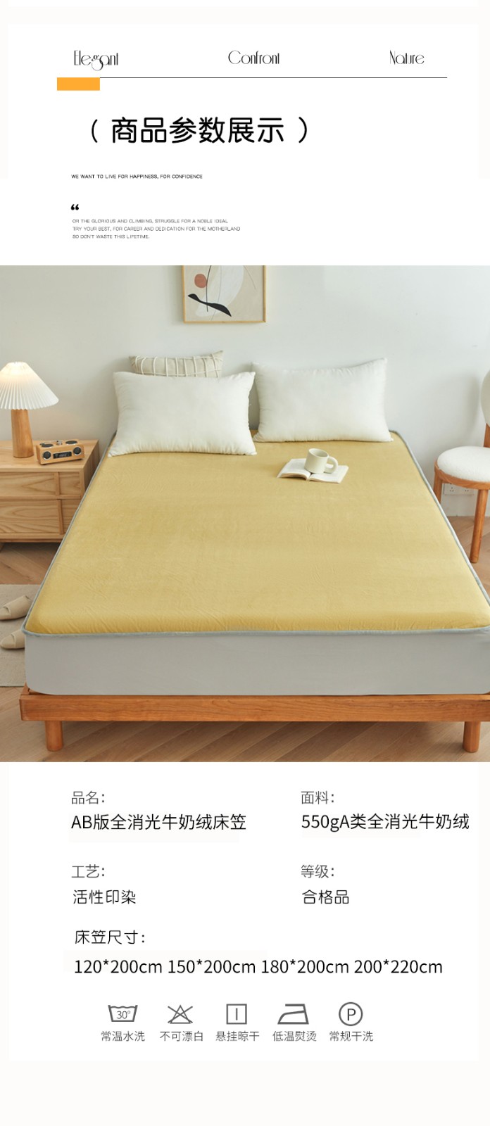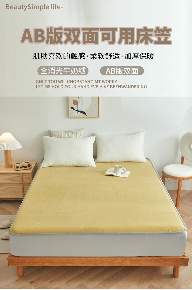 商品名称:AB版双面牛奶绒床笠 复合保暖床笠 双面可用 黄灰