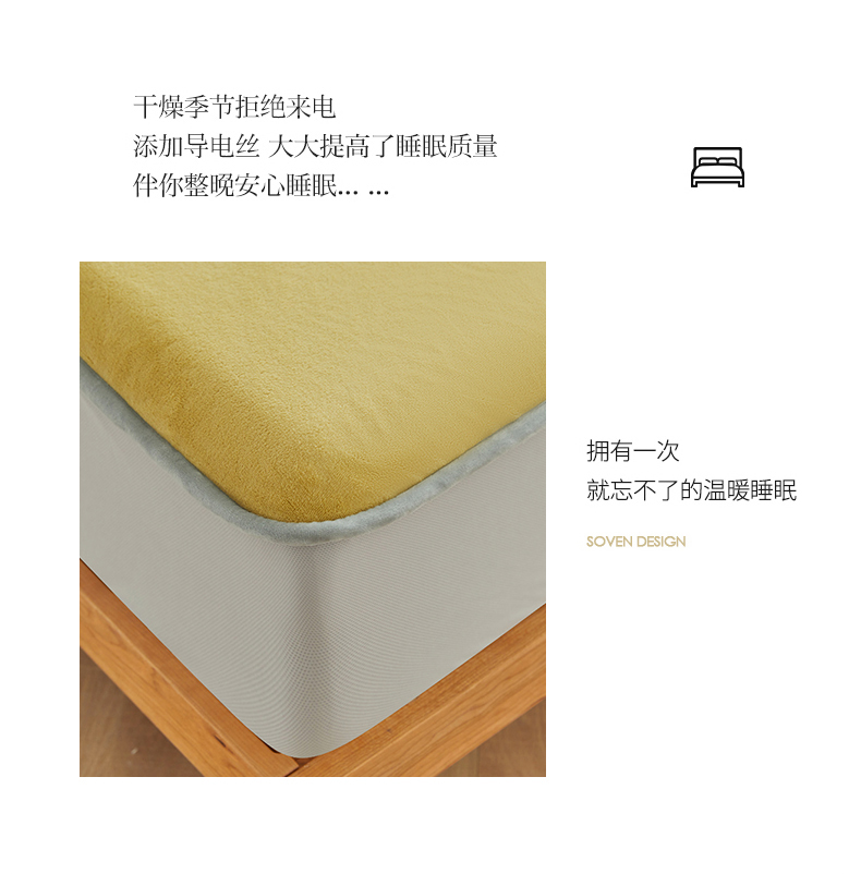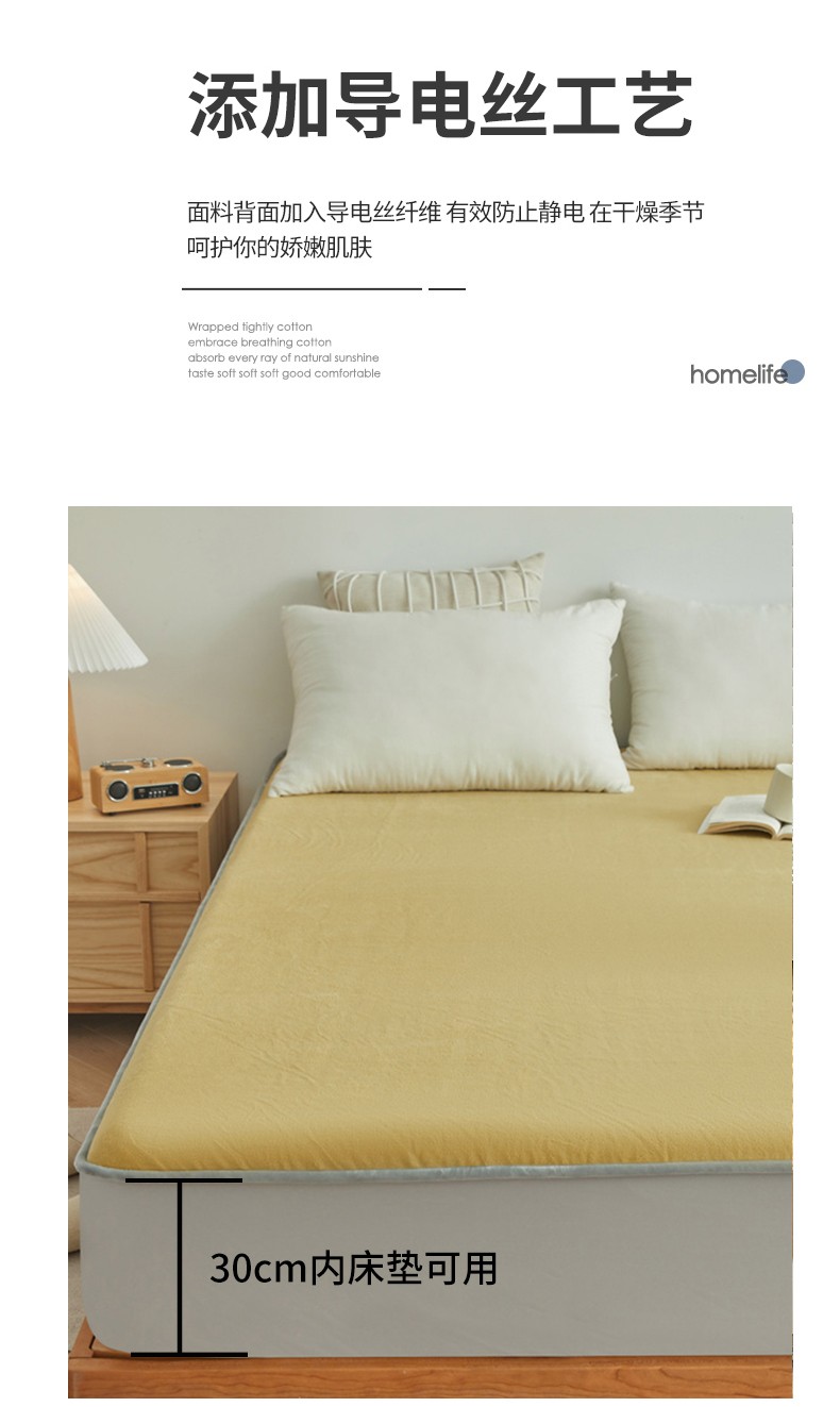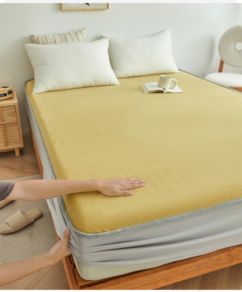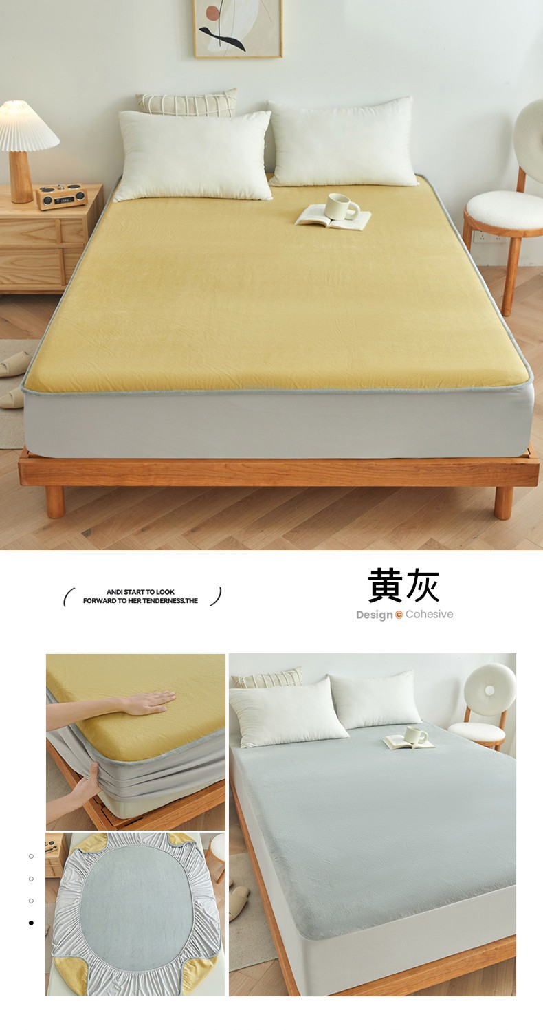 商品名称:AB版双面牛奶绒床笠 复合保暖床笠 双面可用 黄灰