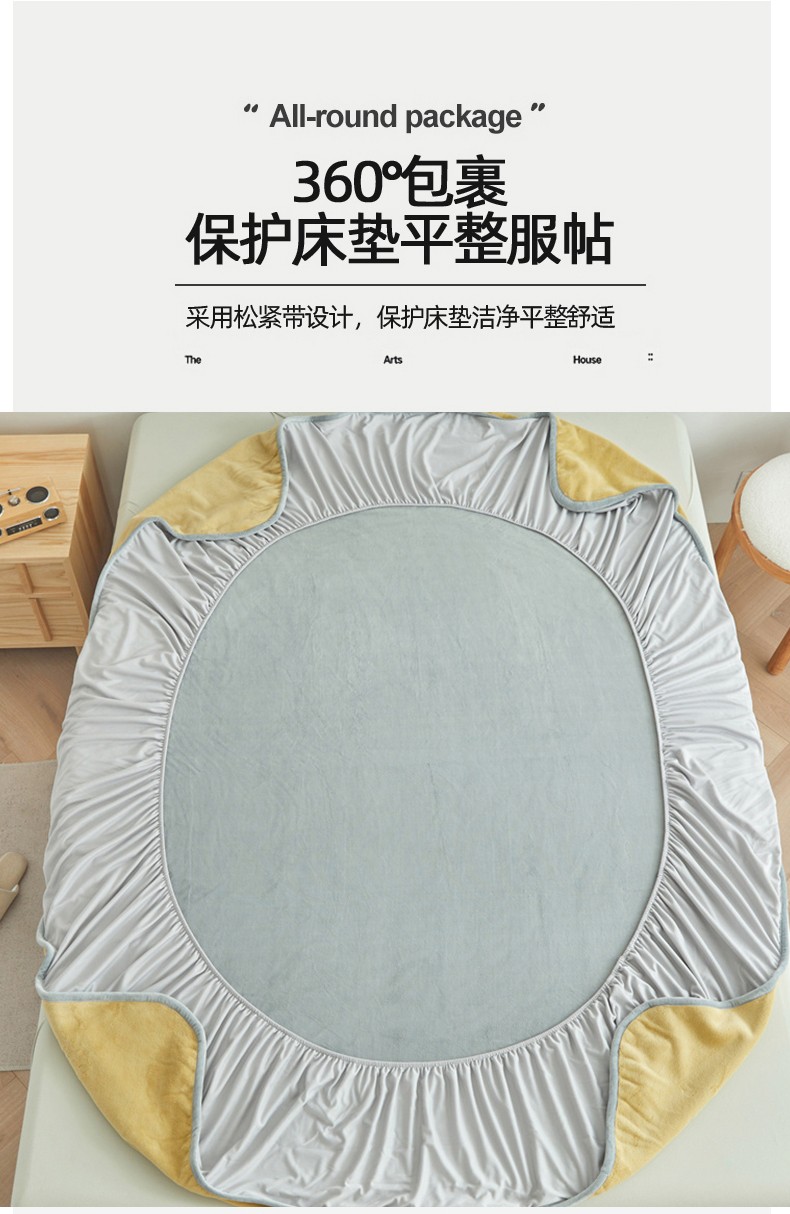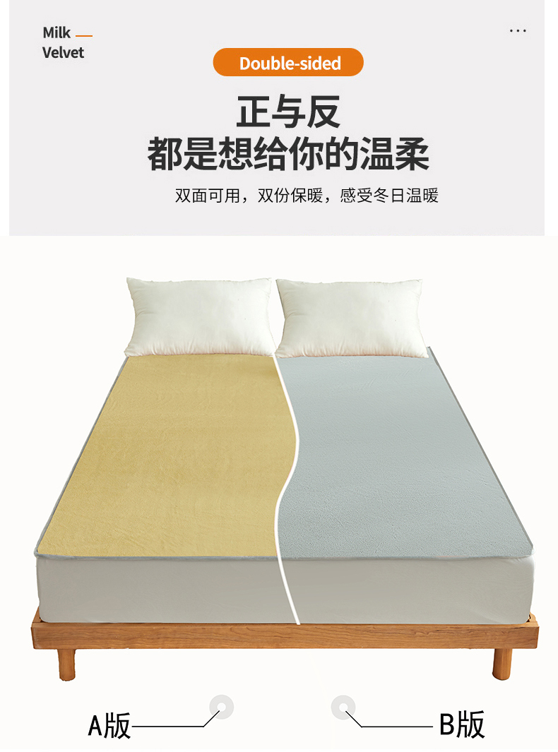 AB版双面牛奶绒床笠 复合保暖床笠 双面可用 黄灰