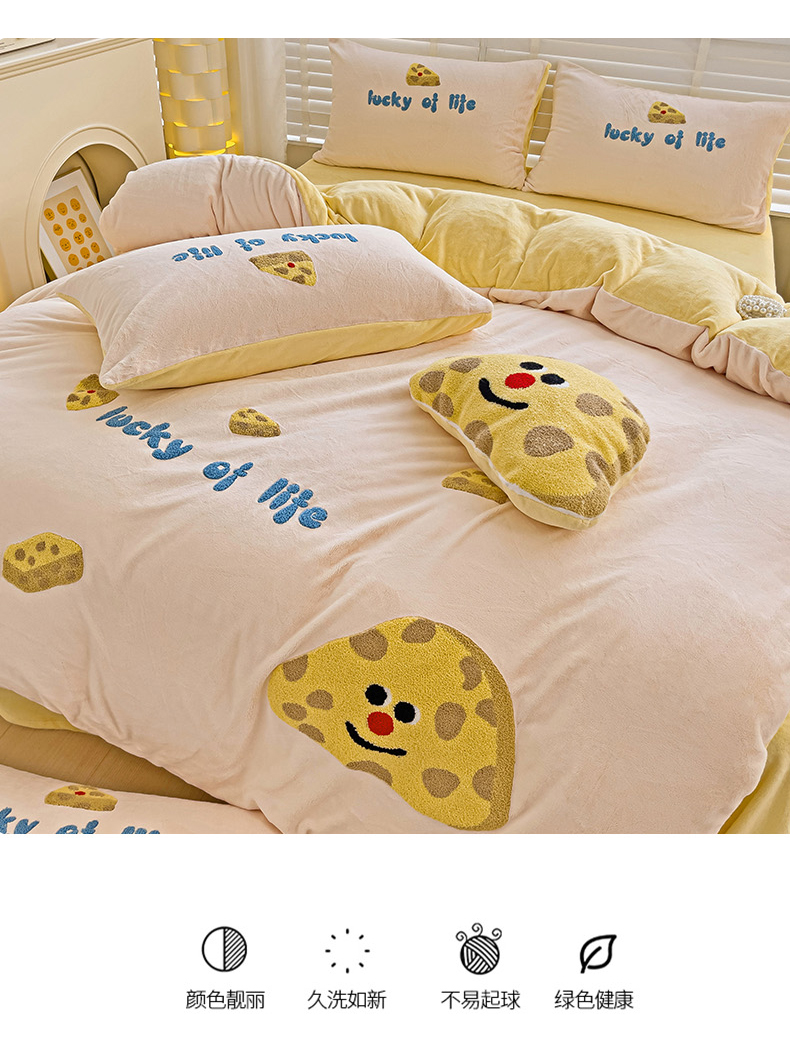 商品名称:娜娜 2023新款牛奶绒毛巾绣四件套 海绵宝宝系列 海绵宝宝-玉色