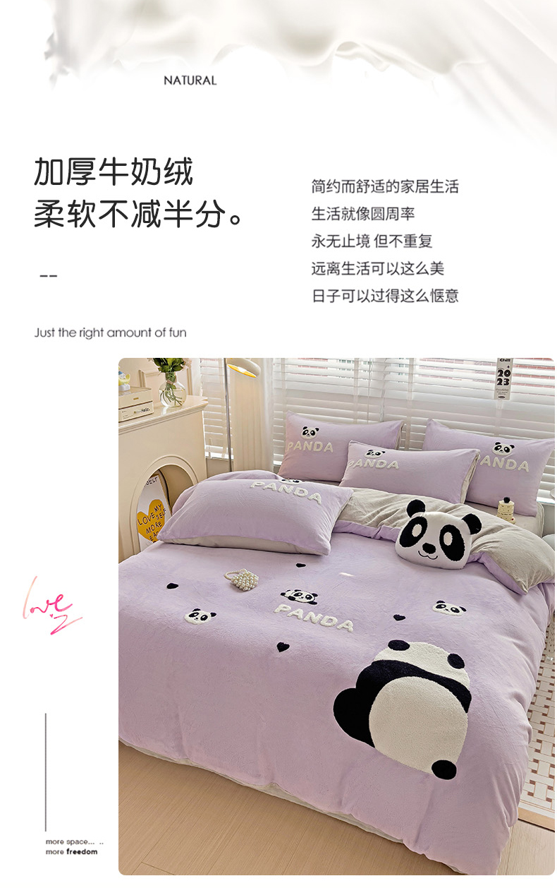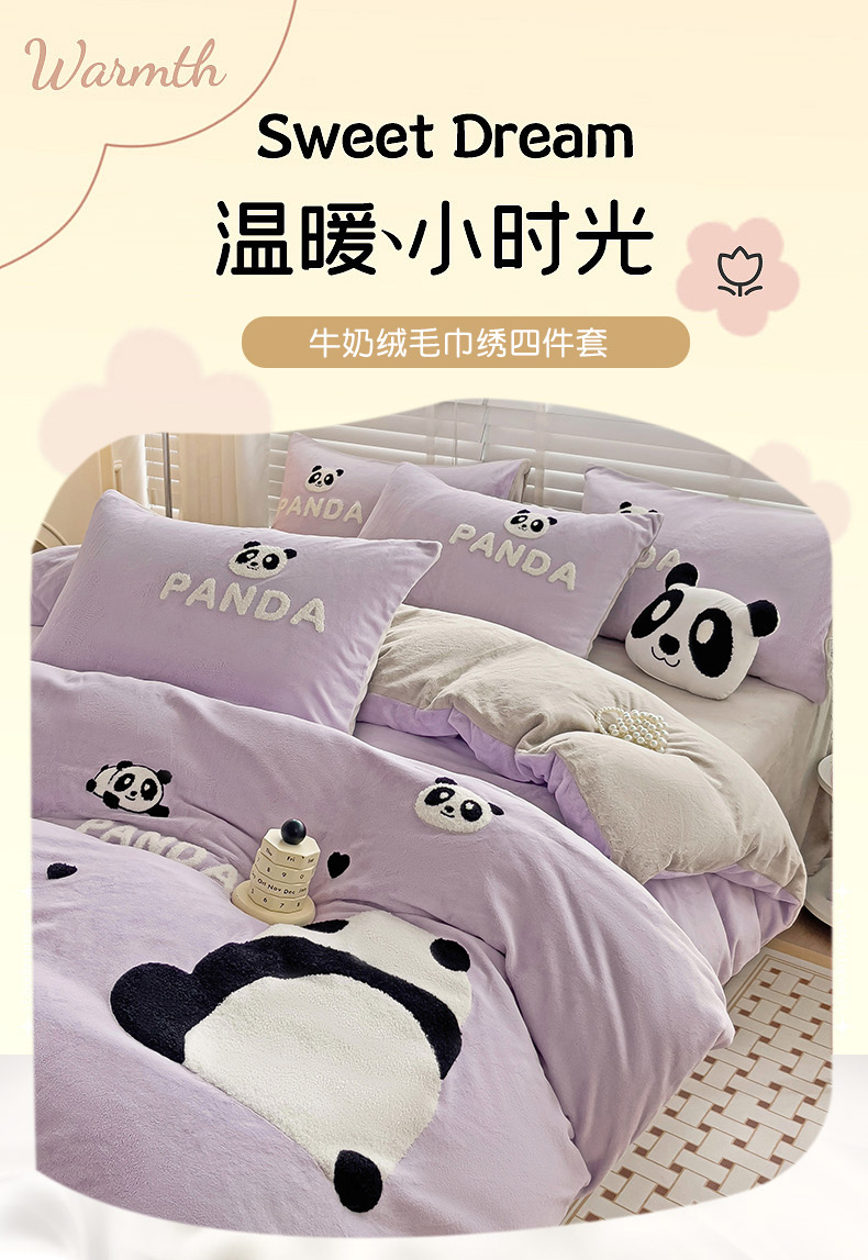娜娜 2023新款牛奶绒毛巾绣四件套 熊猫多多系列 熊猫多多-浅紫
