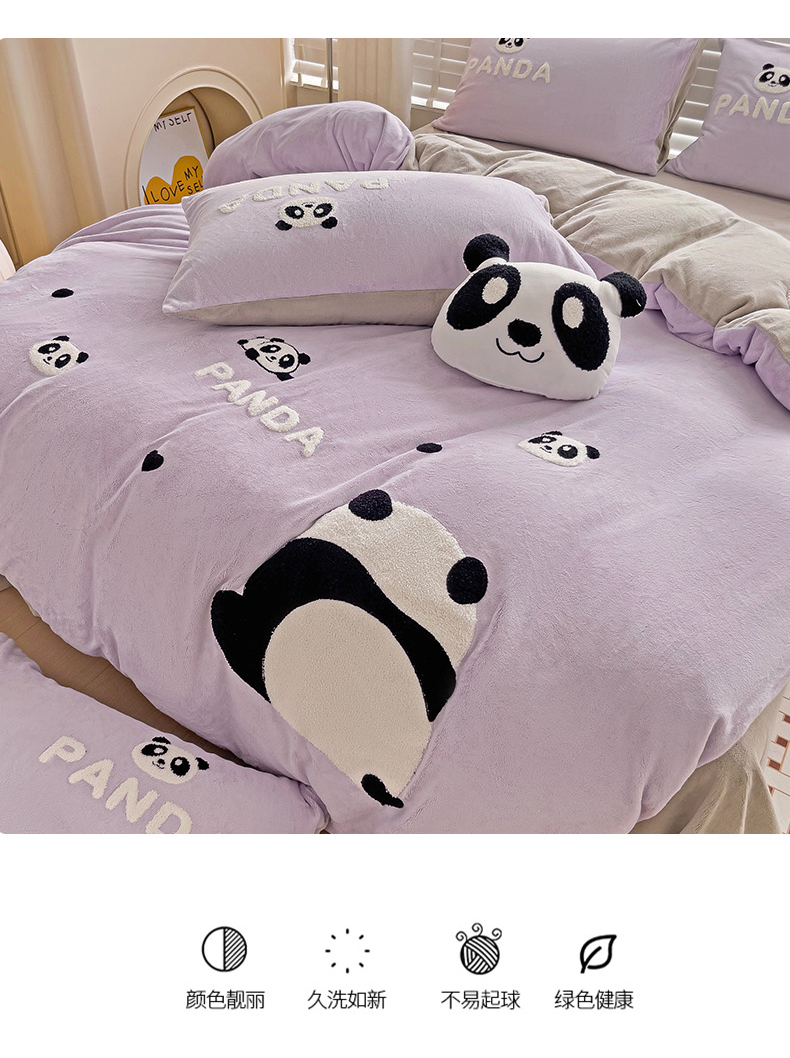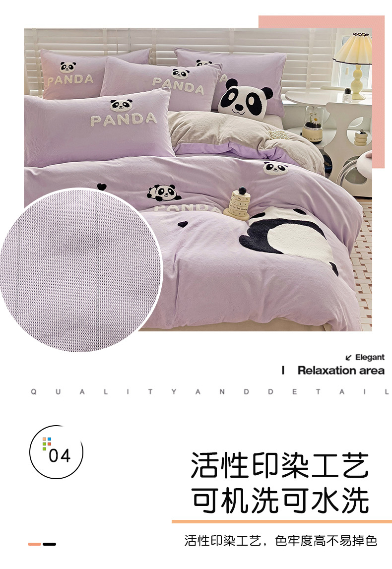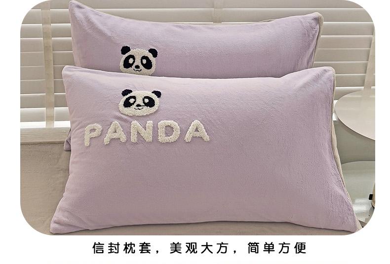 商品名称:娜娜 2023新款牛奶绒毛巾绣四件套 熊猫多多系列 熊猫多多-浅紫