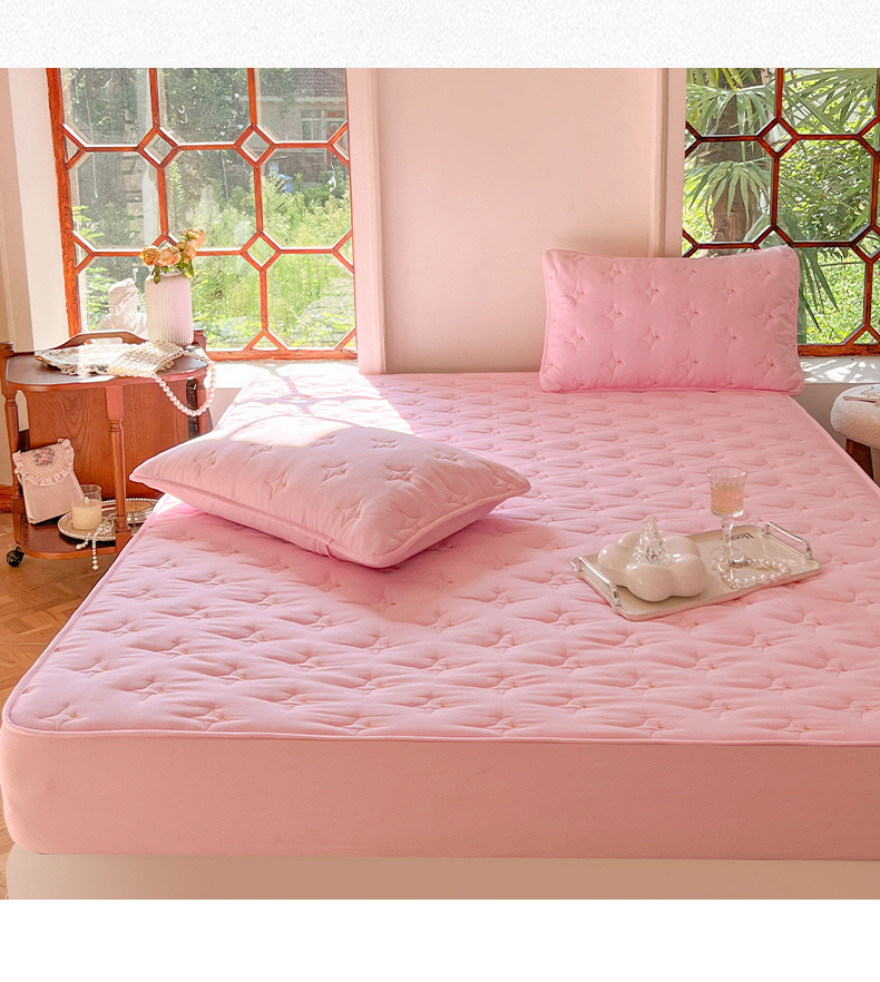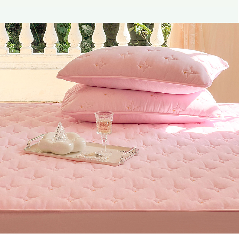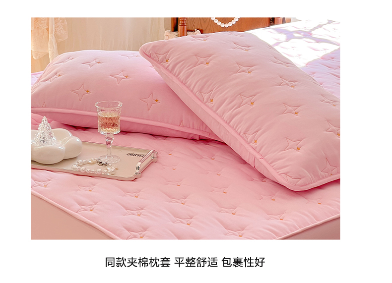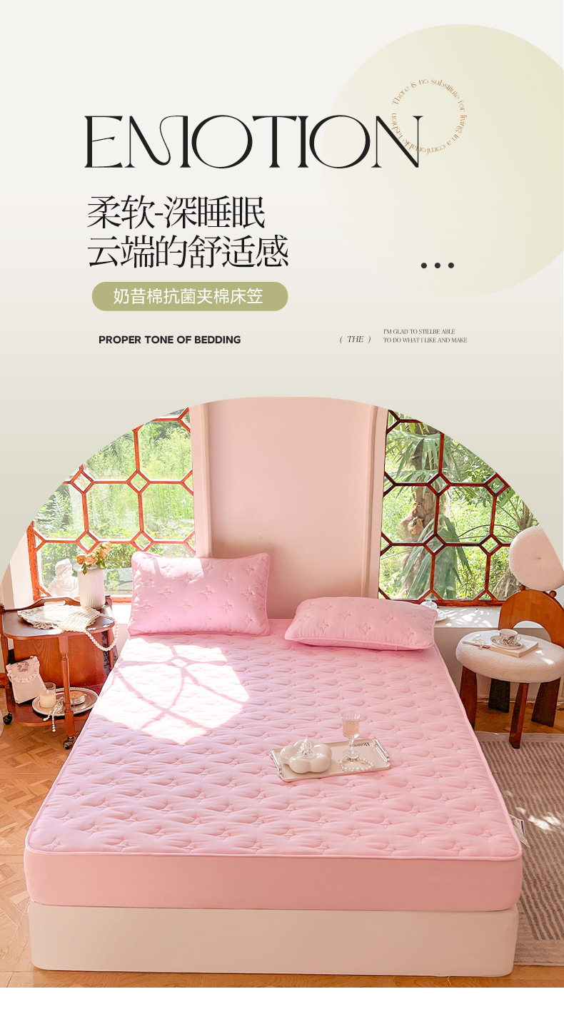 尊康家纺(原磊科) 2024新款奶昔棉抗菌夹棉床笠-心语星愿 粉