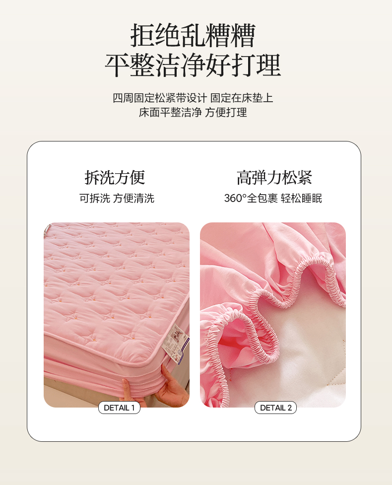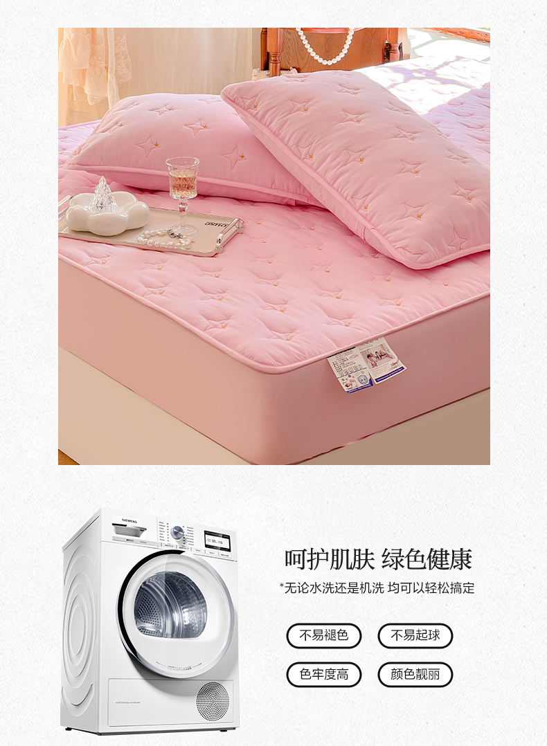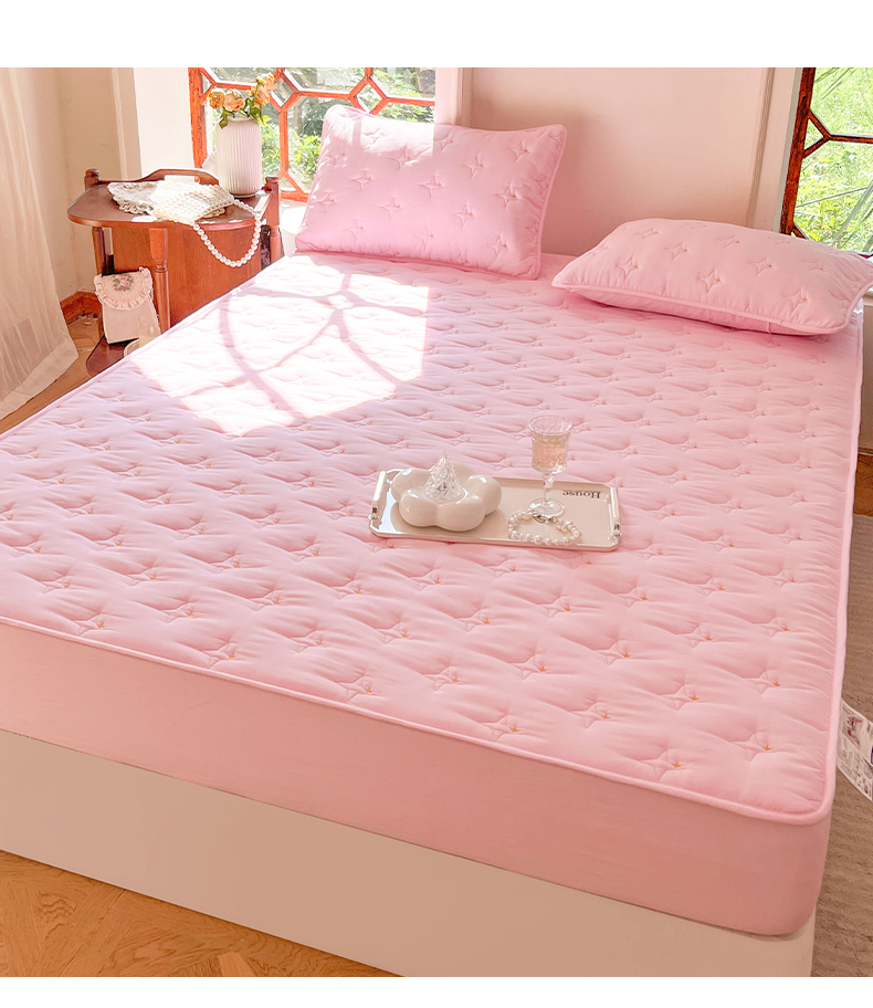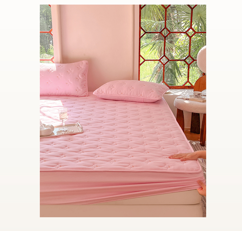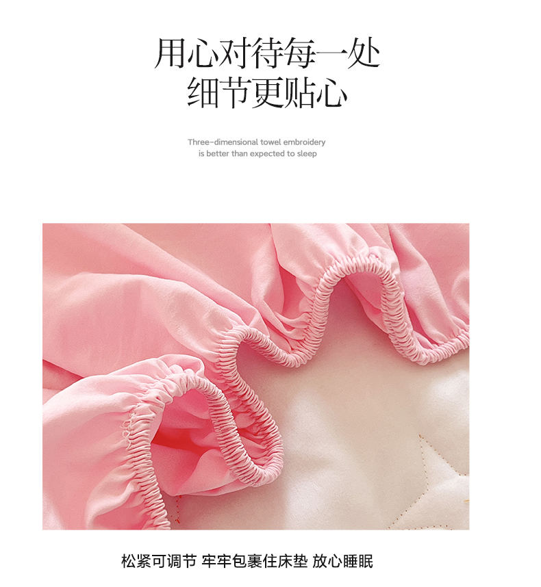 尊康家纺(原磊科) 2024新款奶昔棉抗菌夹棉床笠-心语星愿 粉