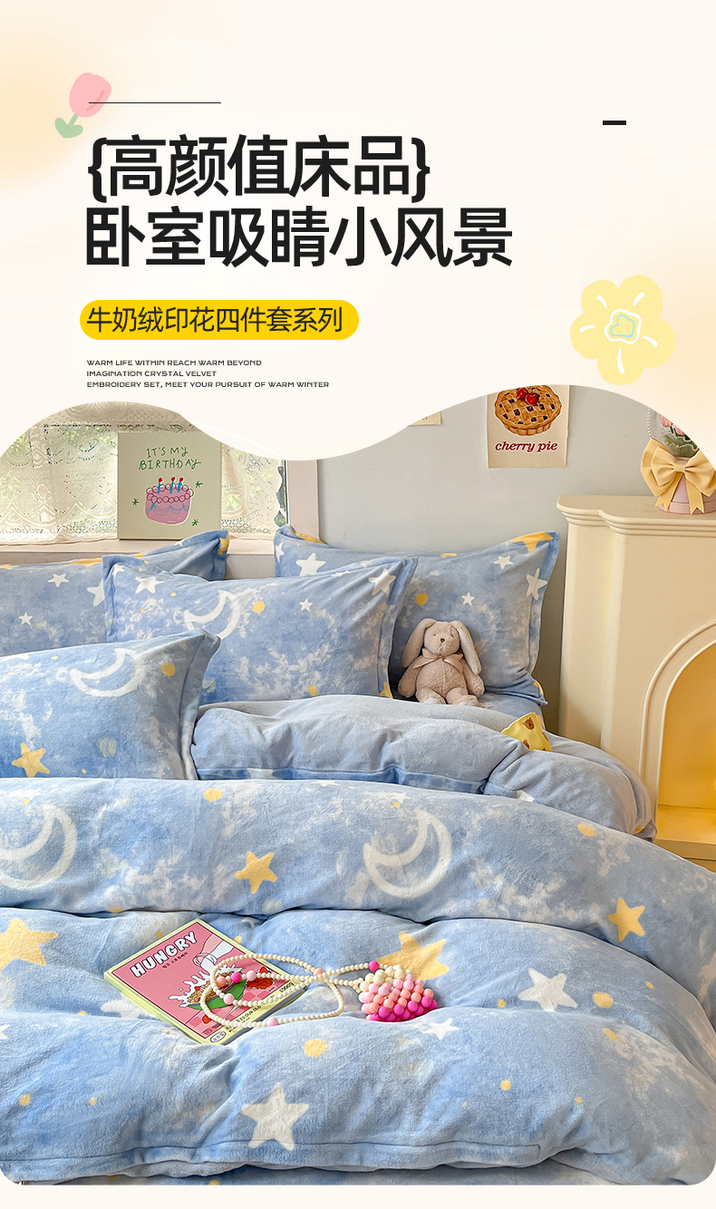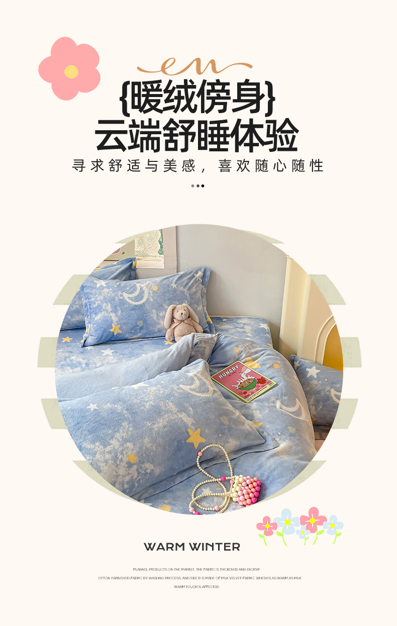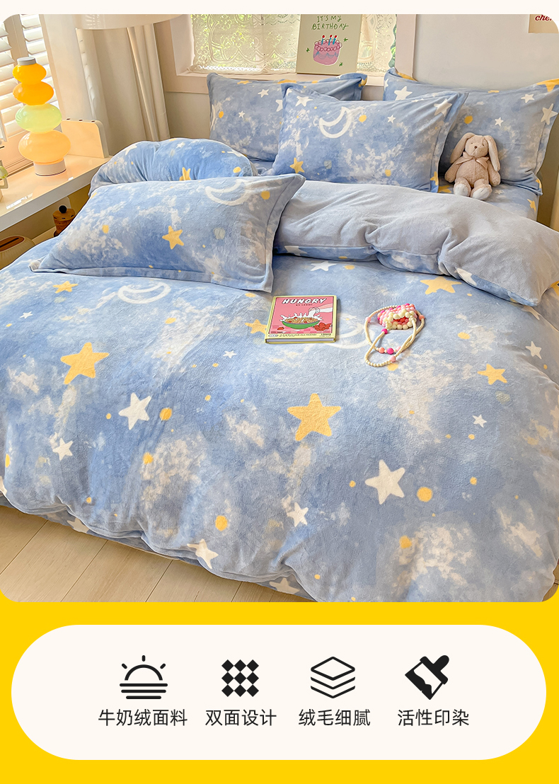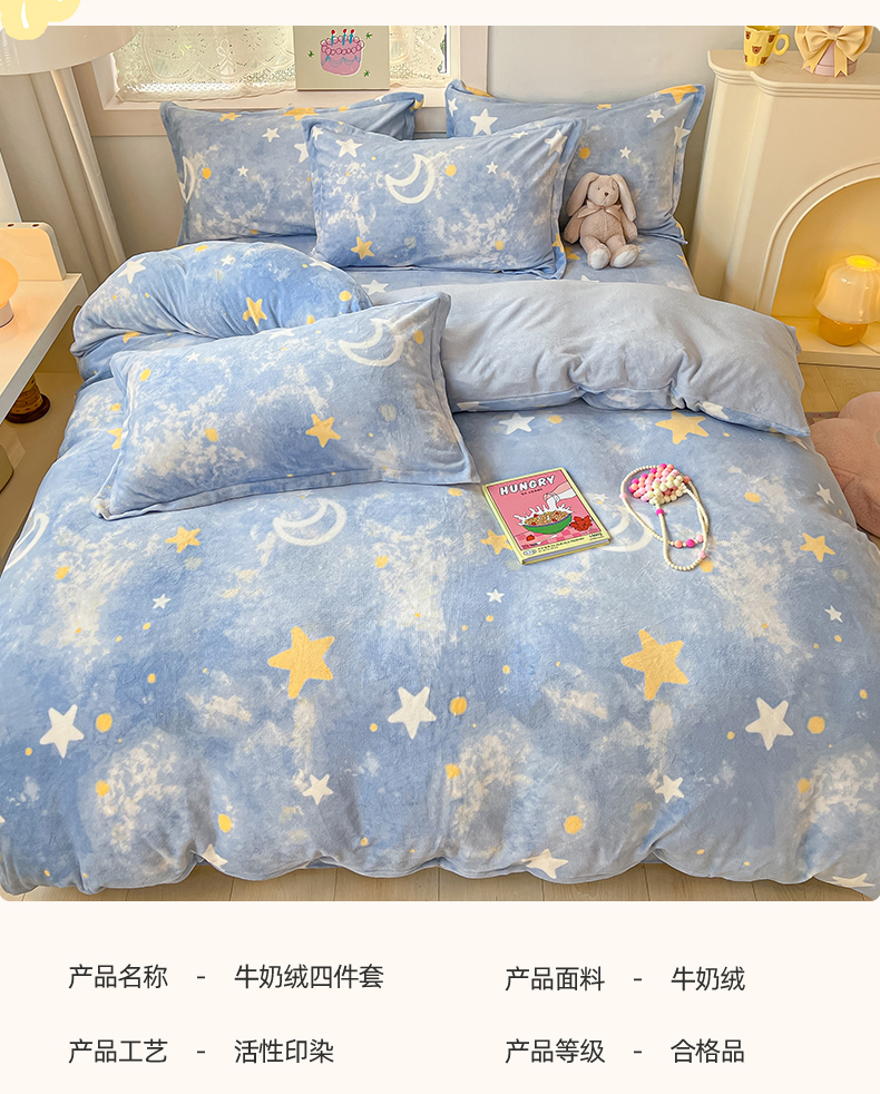 当前位置: 91家纺网 > 商品网购 > 床品套件 > 四件套 > 牛奶绒四件套 > 名兮家居 2023新款高克重牛奶绒四件套 满天星