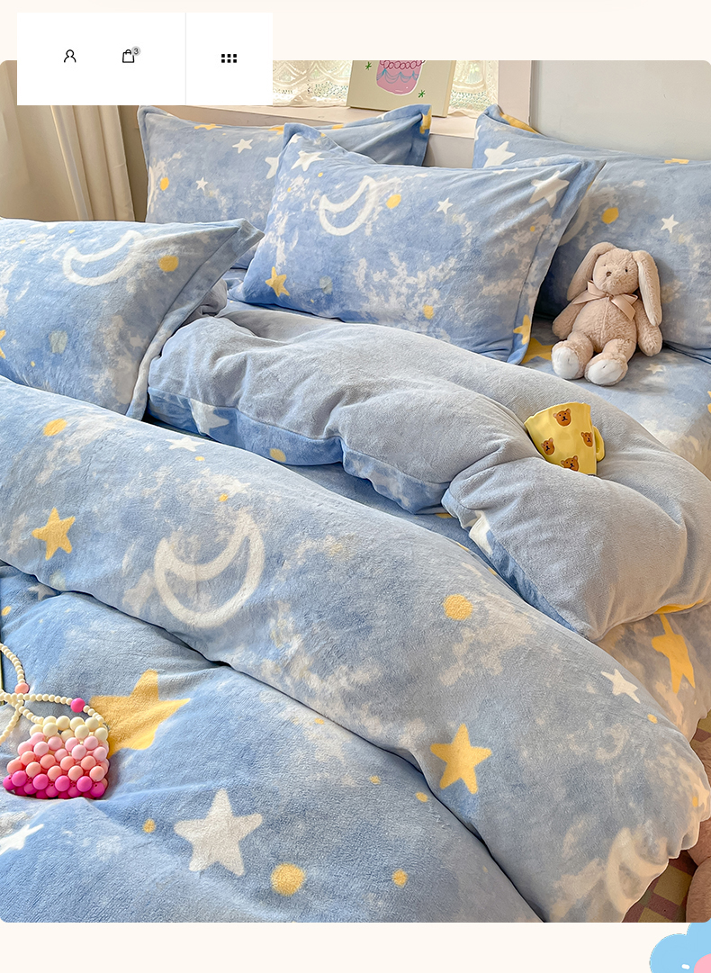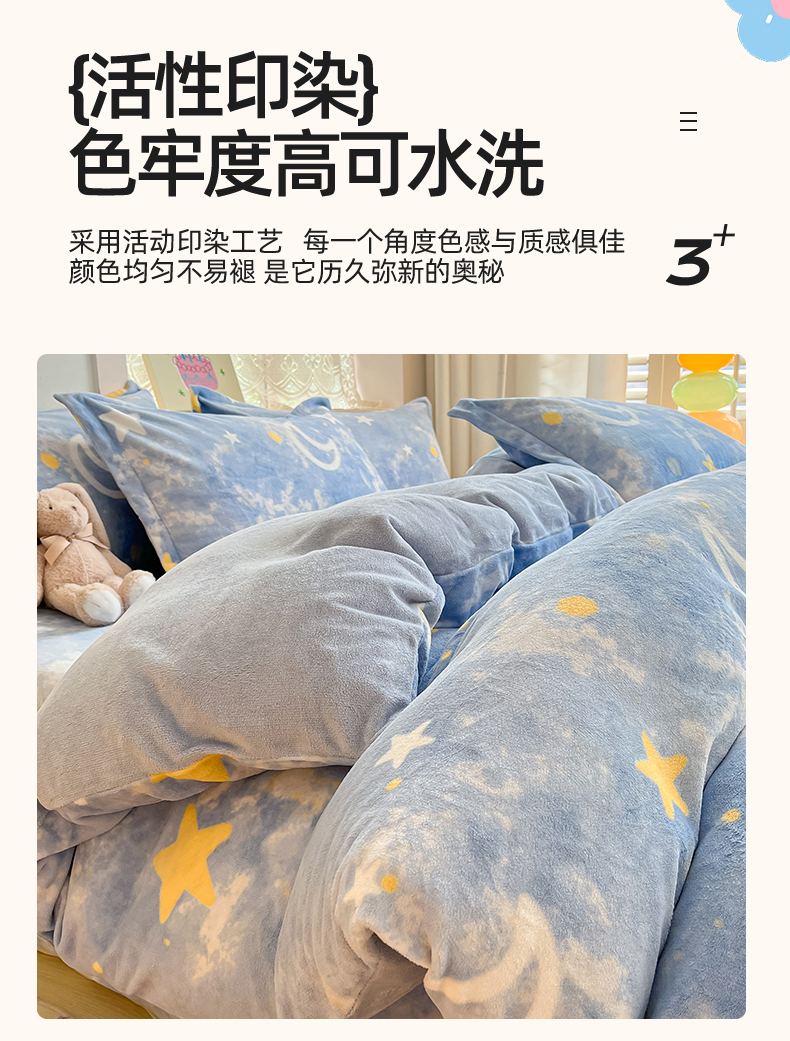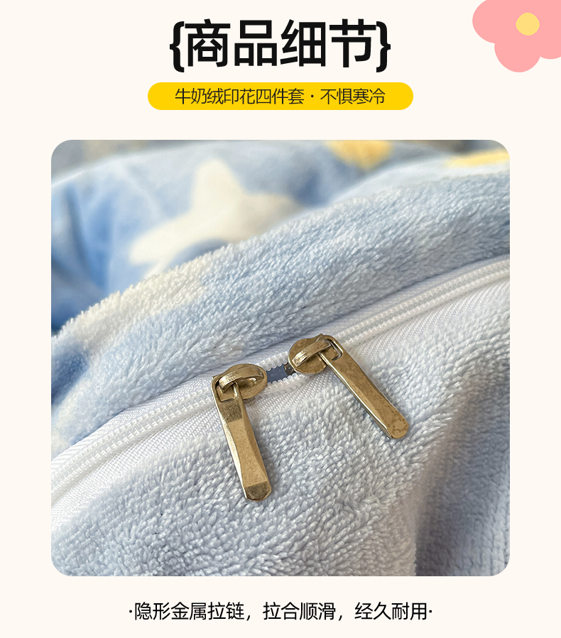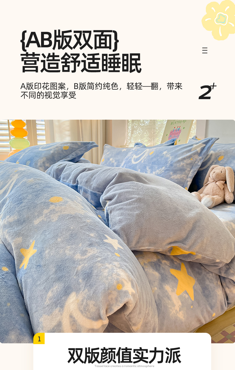 当前位置: 91家纺网 > 商品网购 > 床品套件 > 四件套 > 牛奶绒四件套 > 名兮家居 2023新款高克重牛奶绒四件套 满天星
