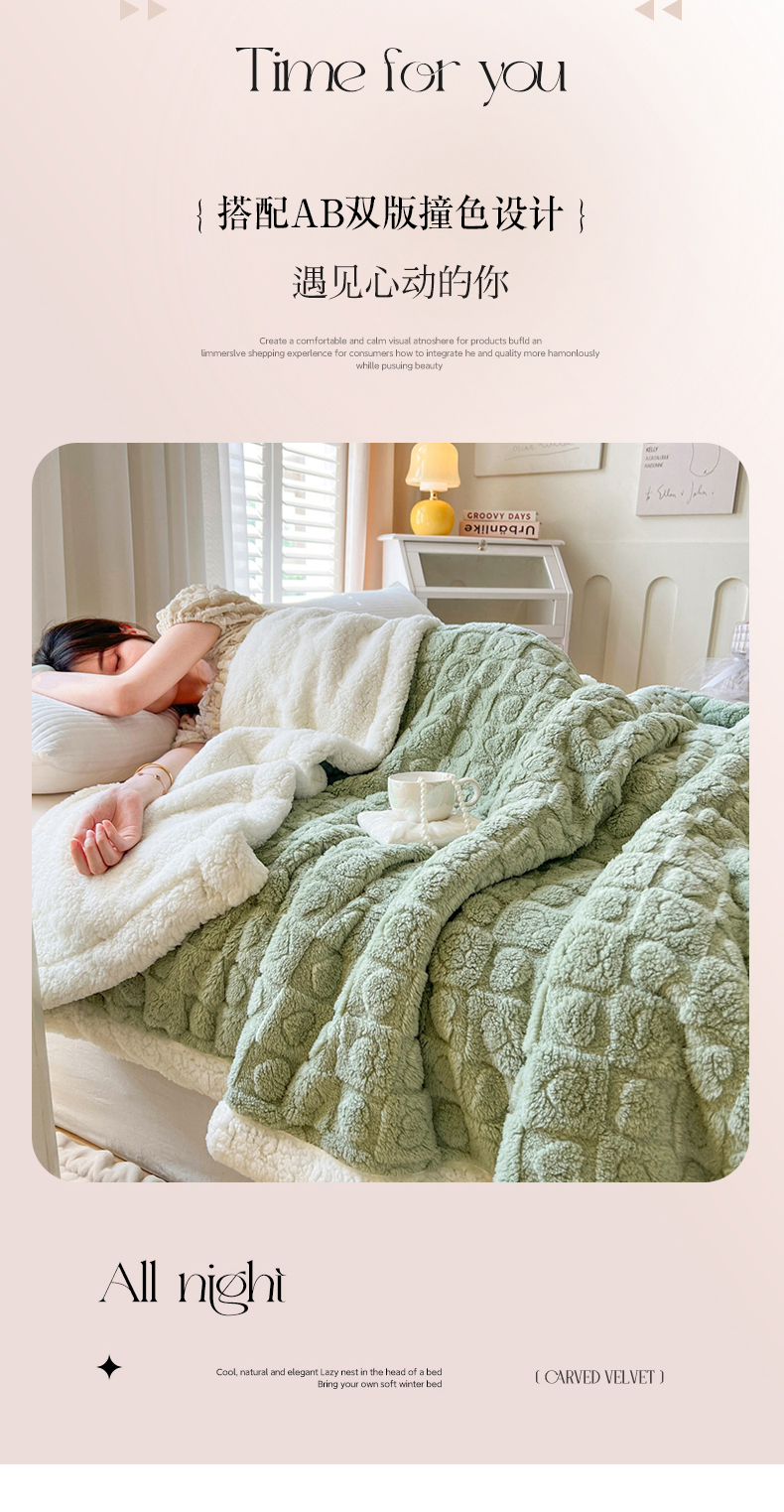 (总)欧邦 2025新款提花暖阳绒羊羔绒毛毯多功能盖毯-梦境系列,梦境-粉玉,梦境-幻白,梦境-米驼,梦境-桑绿,梦境-雾灰