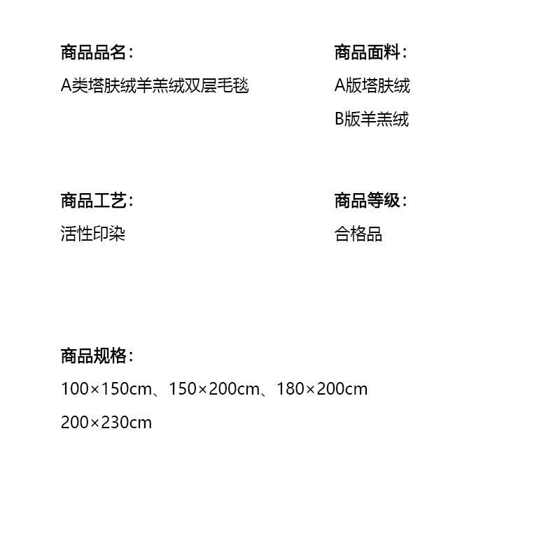 [{"sp_id":11,"sp_name":"\u989c\u8272\u5206\u7c7b","sp_format":2,"sp_list":[{"sp_value_id":69,"sp_value_name":"\u7231\u5fc3\u6b3e-\u679c\u7eff","sp_value_image":{"id":999,"path":"https:\/\/img3.91jf.com\/ghelp\/2023\/20230904\/ac618120-d570-48a8-9adf-63bd8d606ae220230904160352432.jpg_30_30.jpg"},"sp_value_video":{"id":0,"img":"","path":"","time":0,"download_num":0,"play_num":0},"price":"25.00","storage":399,"weight":"2.160","is_check_weight":1,"plus_price":"","sp_sort":188273577}]},{"sp_id":12,"sp_name":"\u5c3a\u5bf8","sp_format":1,"sp_list":[{"sp_value_id":76,"sp_value_name":"100*150cm ","sp_value_image":{"id":0,"path":""},"sp_value_video":{"id":0,"img":"","path":"","time":0,"download_num":0,"play_num":0},"price":"25.00","storage":99,"weight":"2.160","is_check_weight":1,"plus_price":"","sp_sort":188273577},{"sp_value_id":768,"sp_value_name":"150*200cm ","sp_value_image":{"id":0,"path":""},"sp_value_video":{"id":0,"img":"","path":"","time":0,"download_num":0,"play_num":0},"price":"42.00","storage":100,"weight":"1.500","is_check_weight":0,"plus_price":"","sp_sort":188273578},{"sp_value_id":816,"sp_value_name":"180*200cm ","sp_value_image":{"id":0,"path":""},"sp_value_video":{"id":0,"img":"","path":"","time":0,"download_num":0,"play_num":0},"price":"45.00","storage":100,"weight":"1.700","is_check_weight":0,"plus_price":"","sp_sort":188273579},{"sp_value_id":1007,"sp_value_name":"200*230cm","sp_value_image":{"id":0,"path":""},"sp_value_video":{"id":0,"img":"","path":"","time":0,"download_num":0,"play_num":0},"price":"55.00","storage":100,"weight":"2.300","is_check_weight":0,"plus_price":"","sp_sort":188273580}]}]