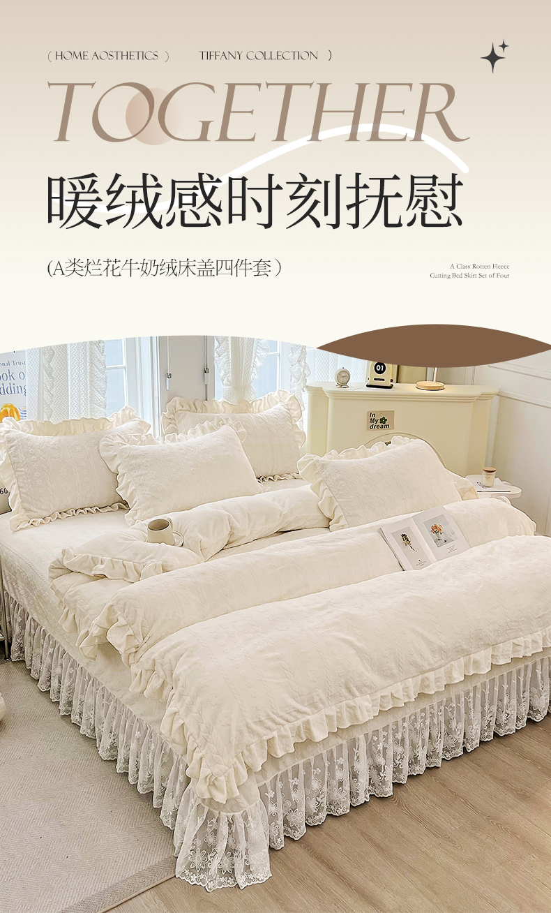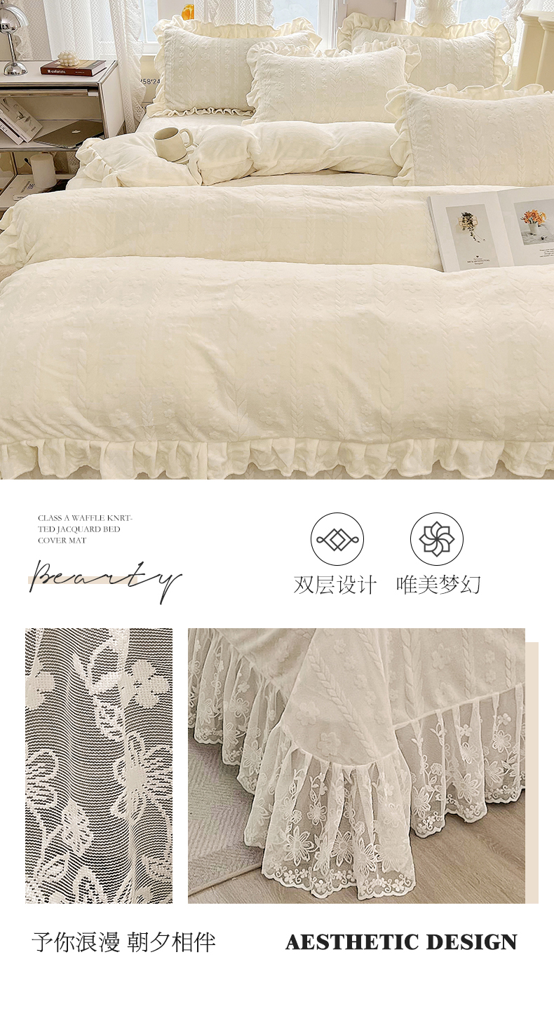 (总)宜凡家纺 2025新款兔绒提花牛奶绒夹棉床裙四件套,爱心 少女粉,爱心 粉紫,爱心 驼色,蝶舞 大红,蝶舞 米色,蝶舞 浅紫,蝶舞 玉色,简爱 苍青,简爱 豆沙紫,简爱 玉色,樱桃 苍青,樱桃 豆沙紫,樱桃 奶油白