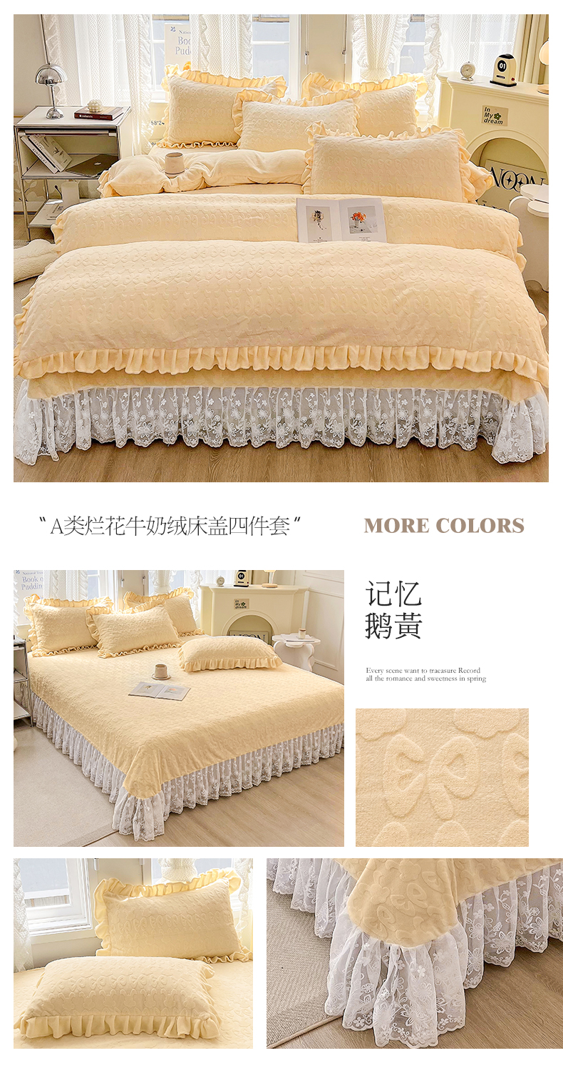 商品名称:宜凡 2023新款烂花牛奶绒床盖四件套 记忆-鹅黄