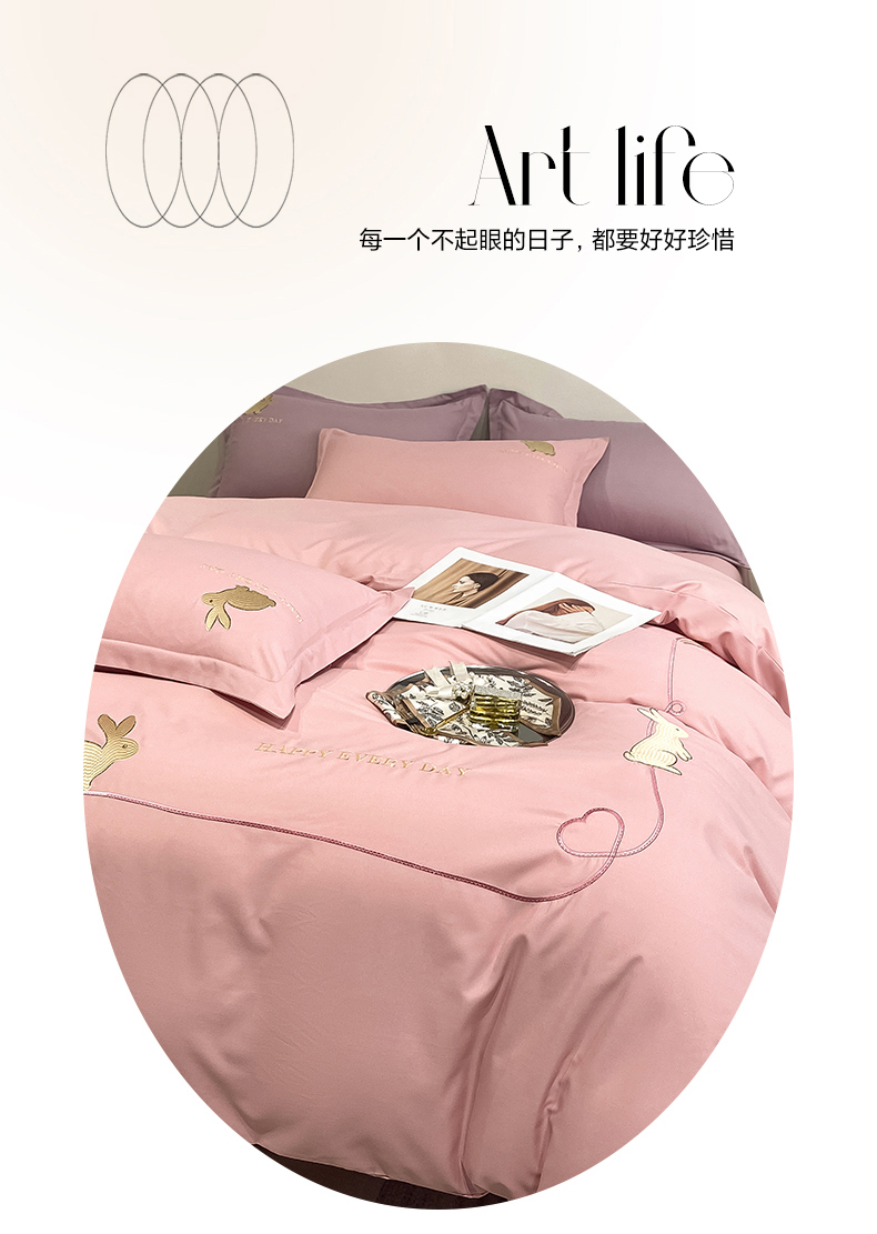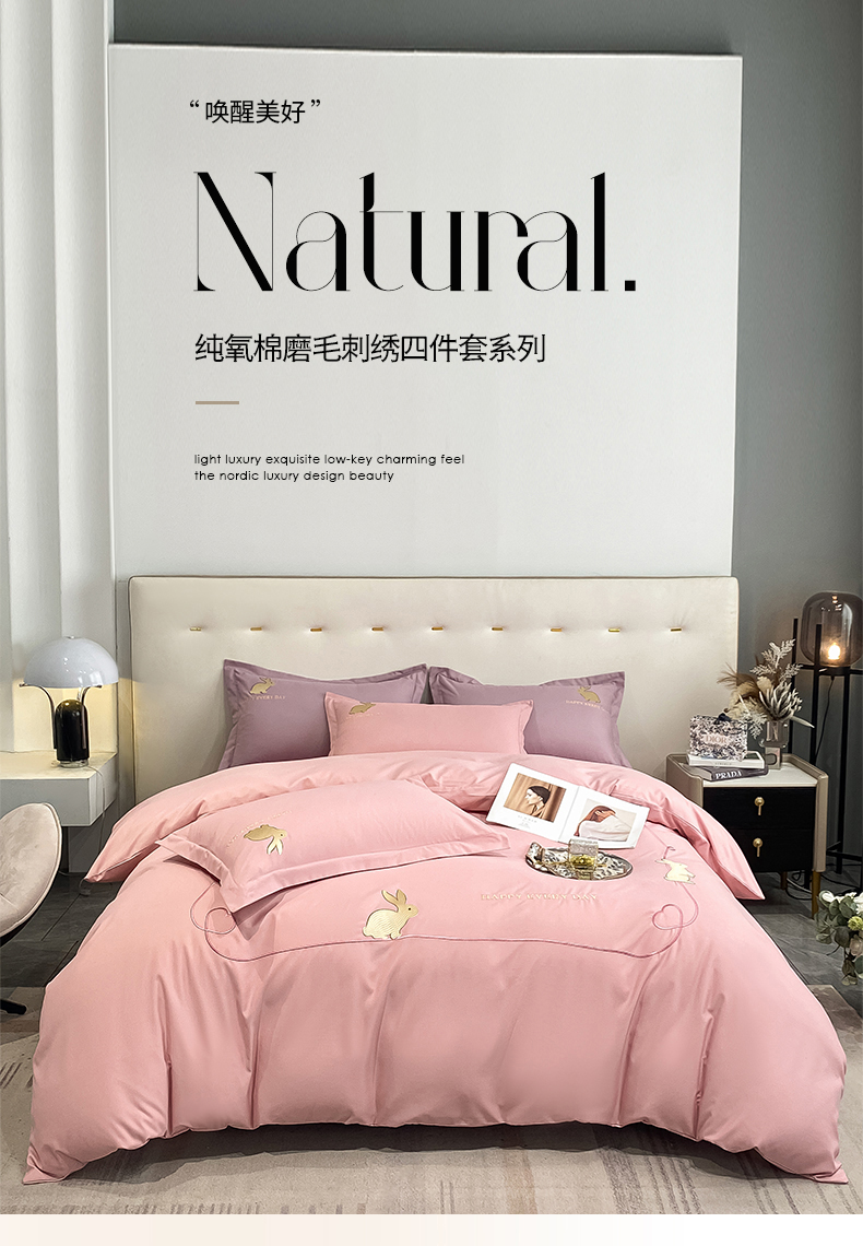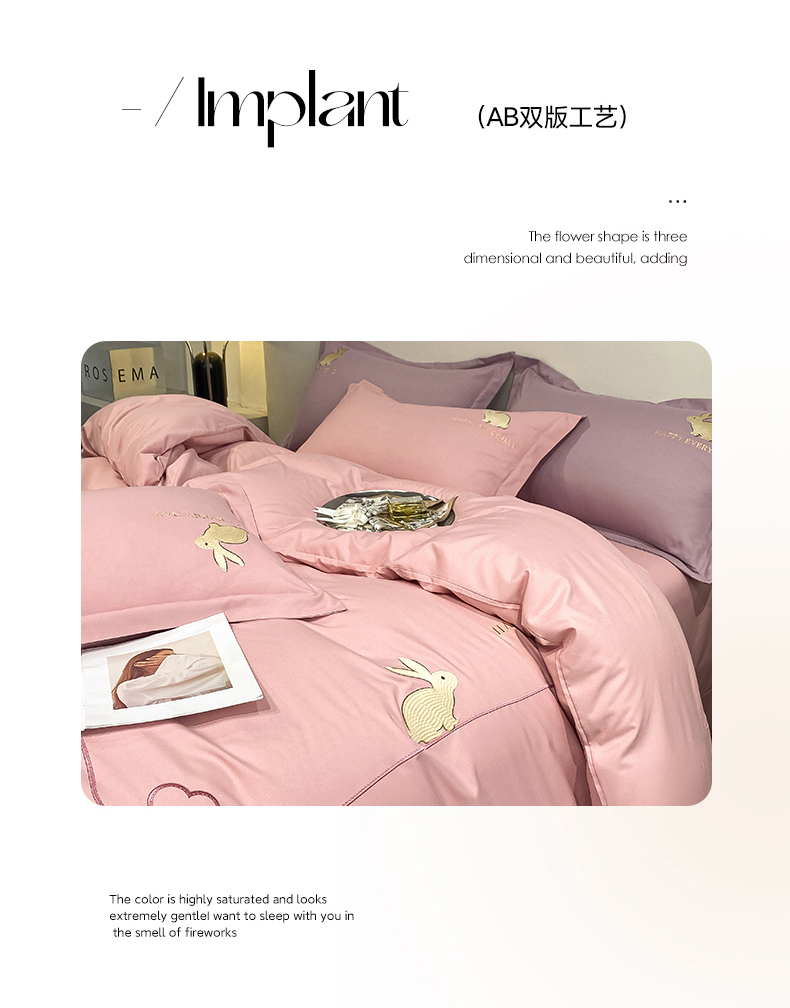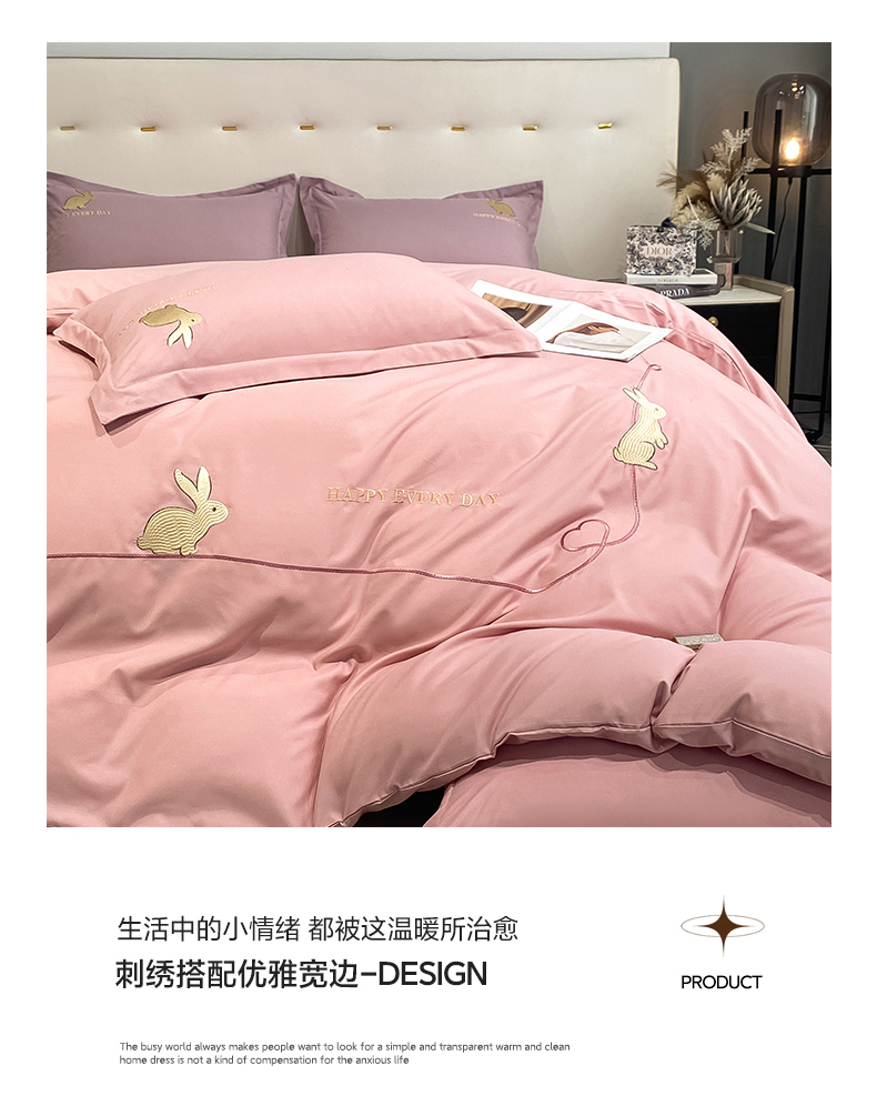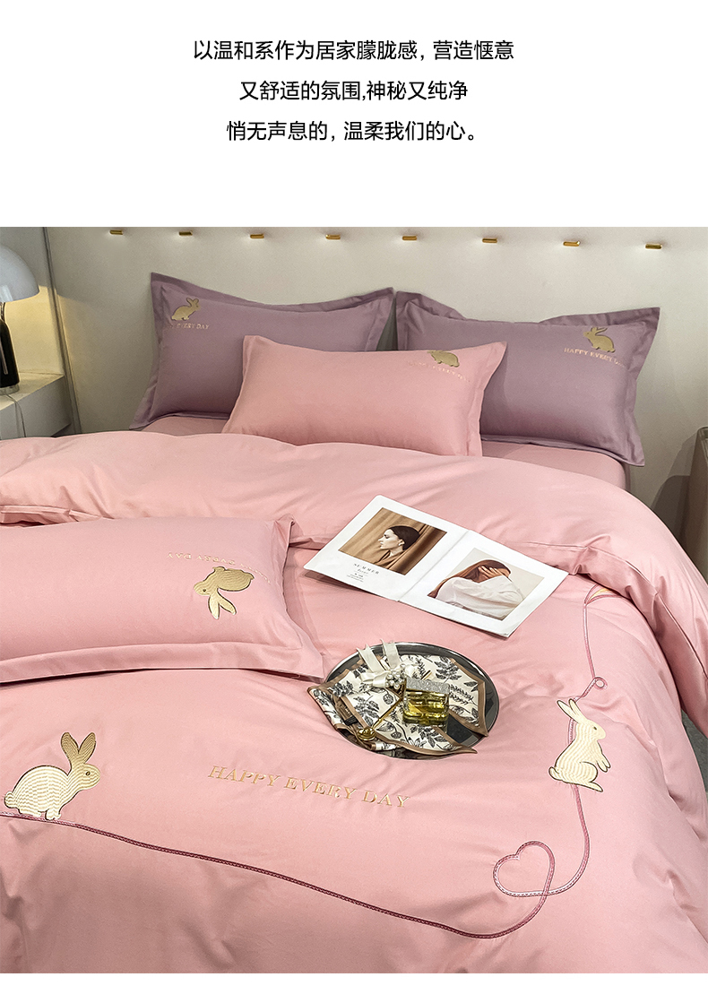 (总)爱家2023新款纯氧棉磨毛刺绣四件套--吉祥兔系列