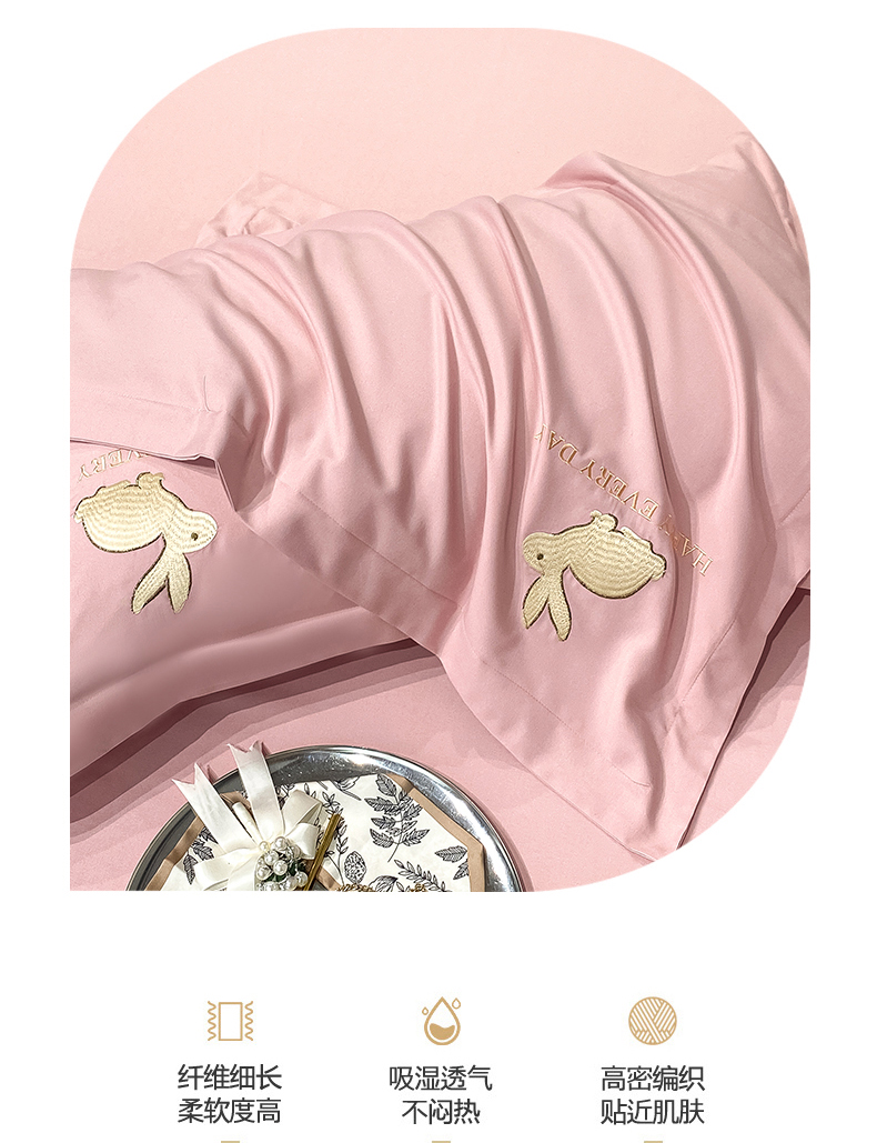 (总)爱家(原缔乐家居)2023新款超柔雪莲天丝刺绣四件套-暗香,宾利蓝,公主粉,奶油绿,柠檬黄,优雅紫