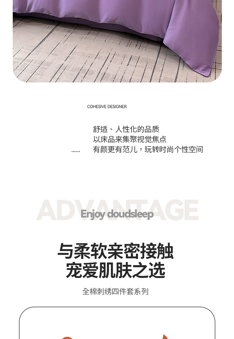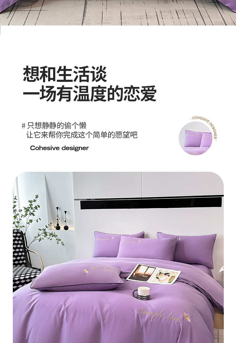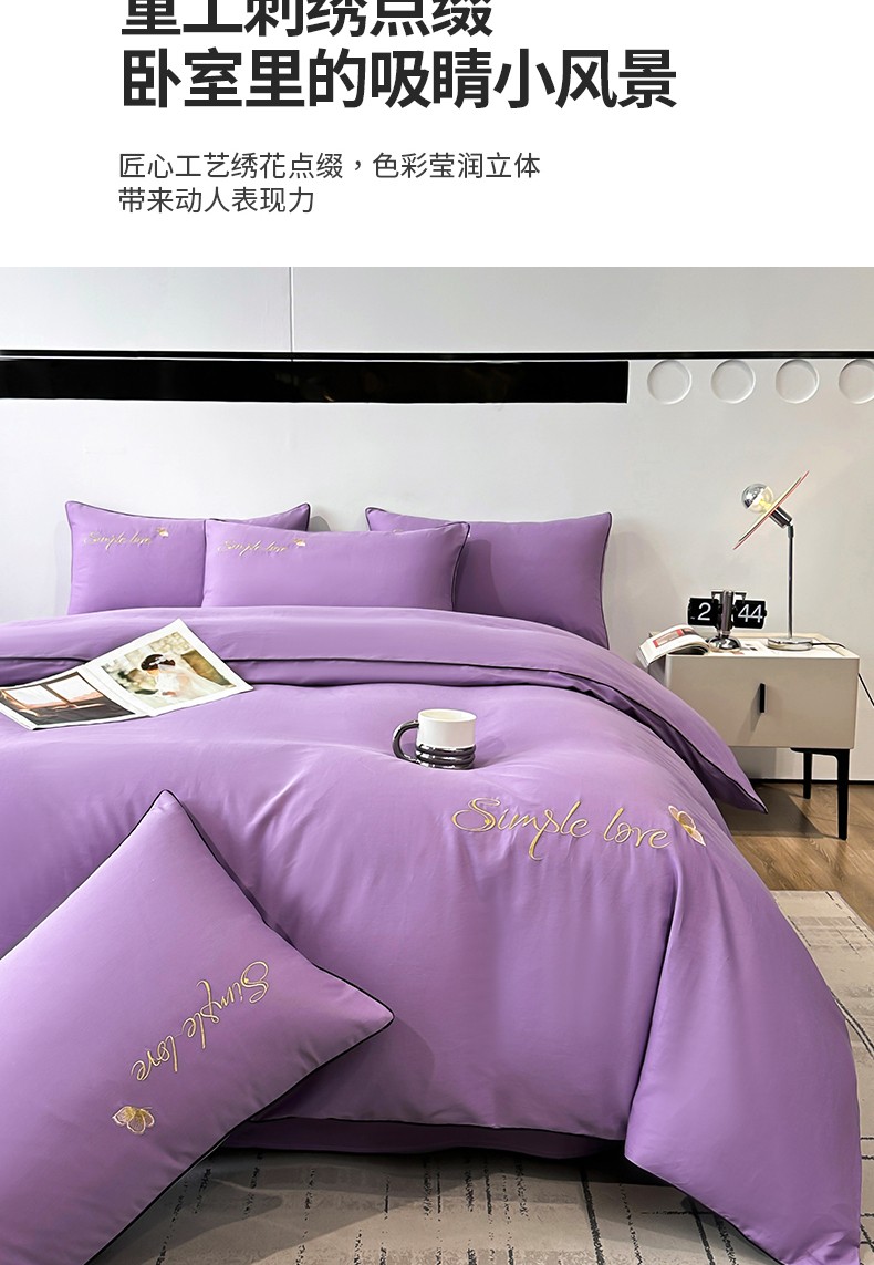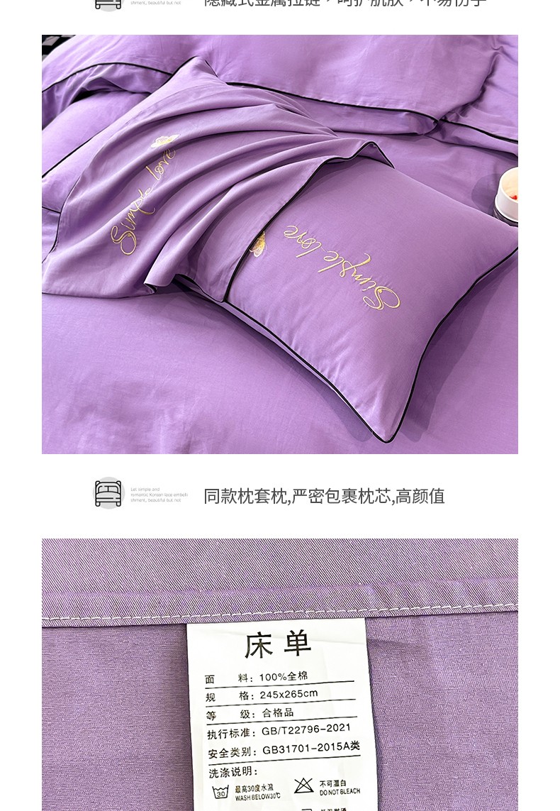 当前位置: 91家纺网 > 商品网购 > 床品套件 > 四件套 > 全棉普通四件套 > 宇彬 直播热爆新款全棉母婴级麻绳滚边纯色刺绣四件套 轻奢 典雅紫
