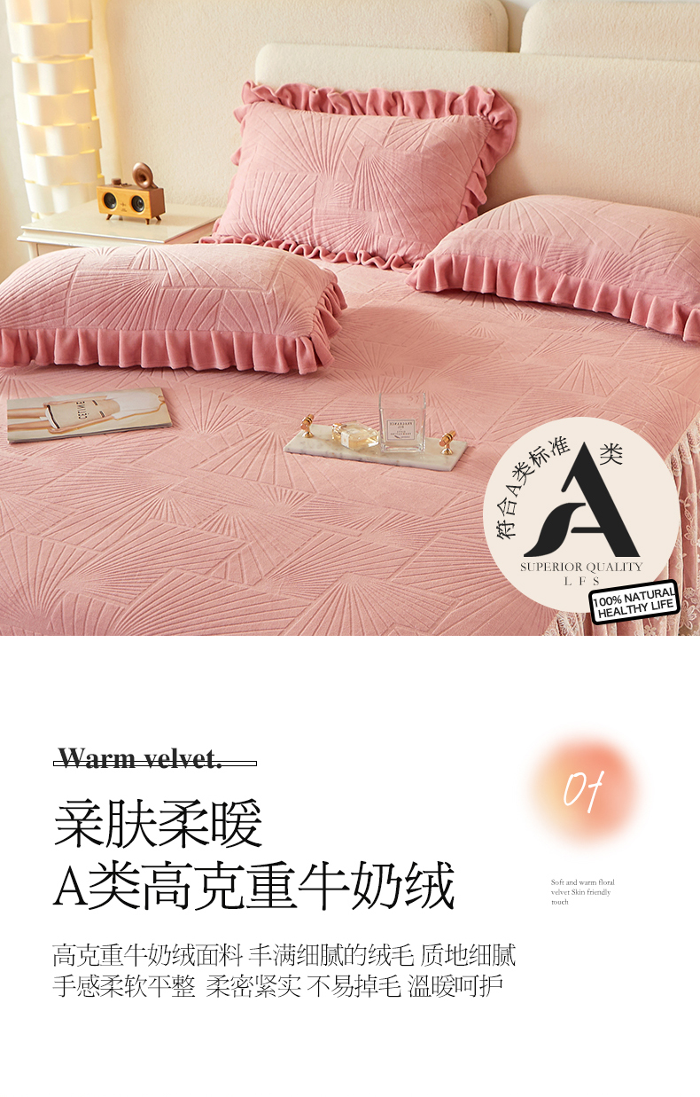 (总)宜凡家纺 2025新款兔绒提花牛奶绒夹棉床裙四件套,爱心 少女粉,爱心 粉紫,爱心 驼色,蝶舞 大红,蝶舞 米色,蝶舞 浅紫,蝶舞 玉色,简爱 苍青,简爱 豆沙紫,简爱 玉色,樱桃 苍青,樱桃 豆沙紫,樱桃 奶油白