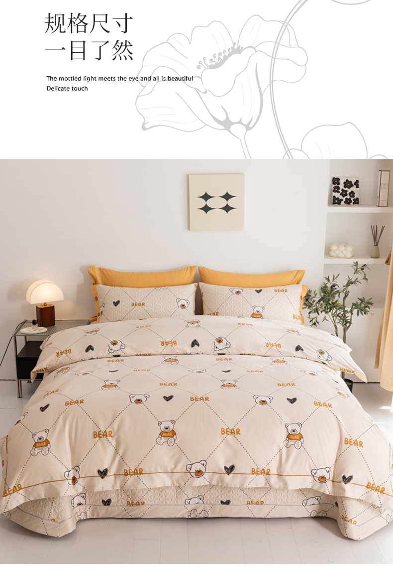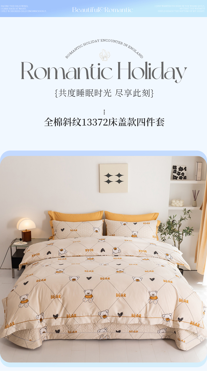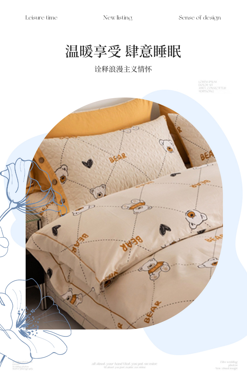 商品名称:优乐家纺 2025新款纯棉斜纹床盖款单层被套四件套 奇妙熊