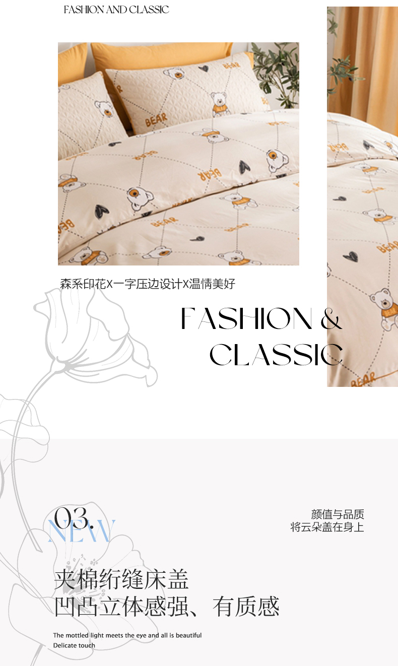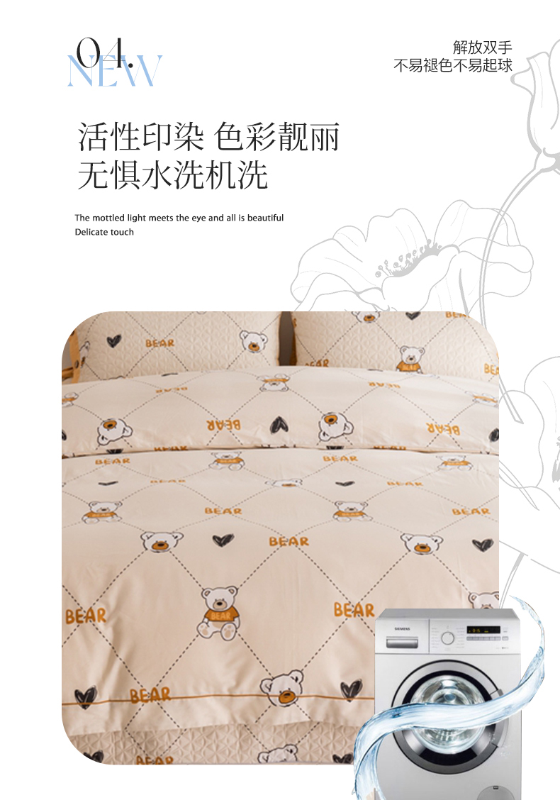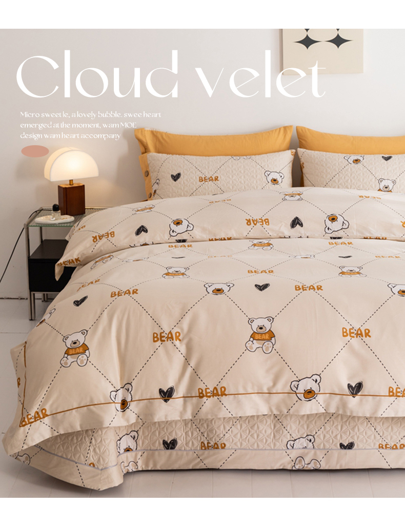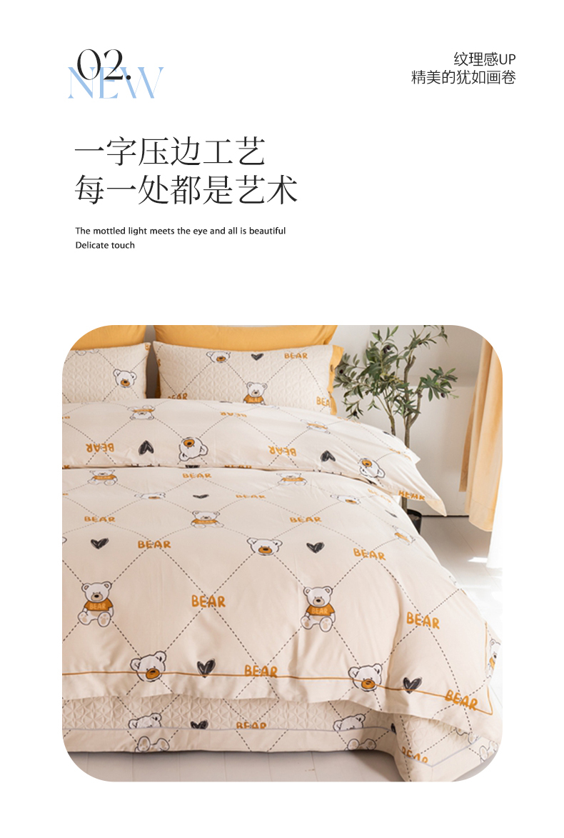 商品名称:优乐家纺 2025新款纯棉斜纹床盖款单层被套四件套 奇妙熊