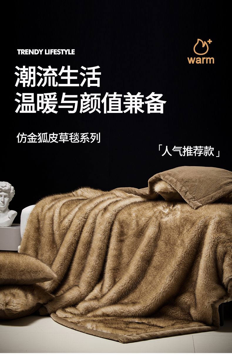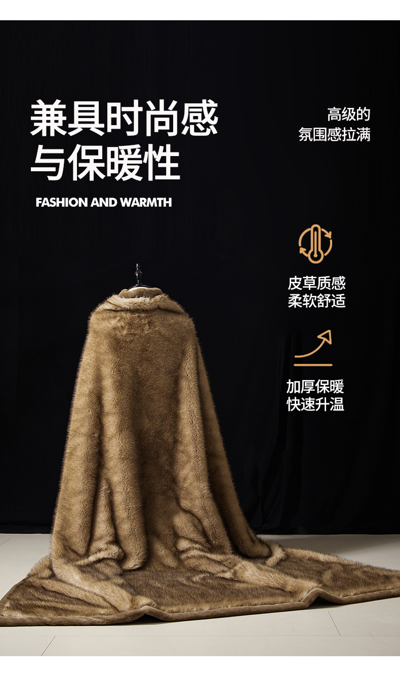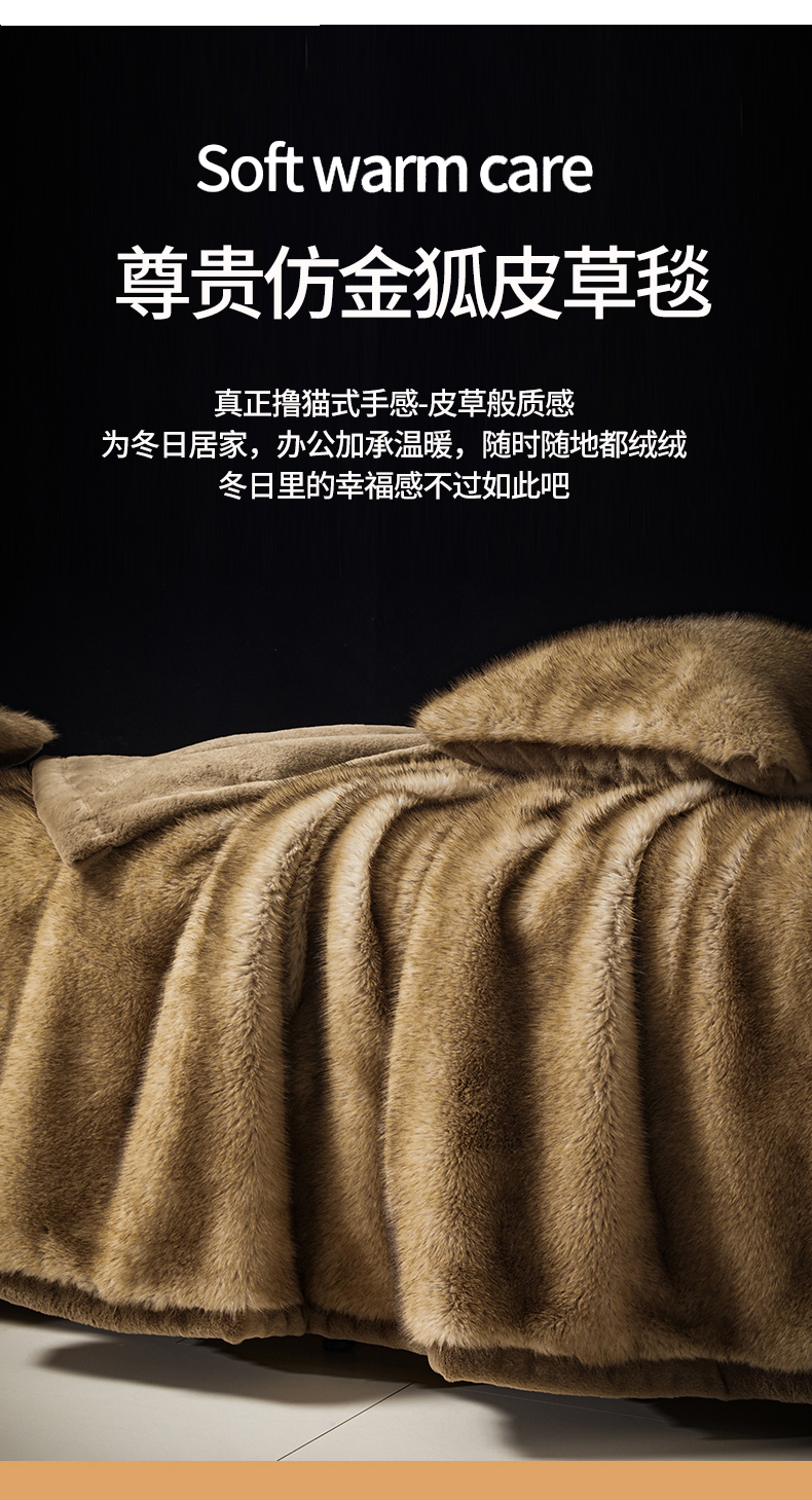 商品名称:凯轩毛毛毯毯子网销专供 23新款仿金狐皮草毛毯毯子 高贵驼