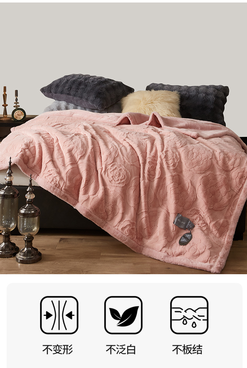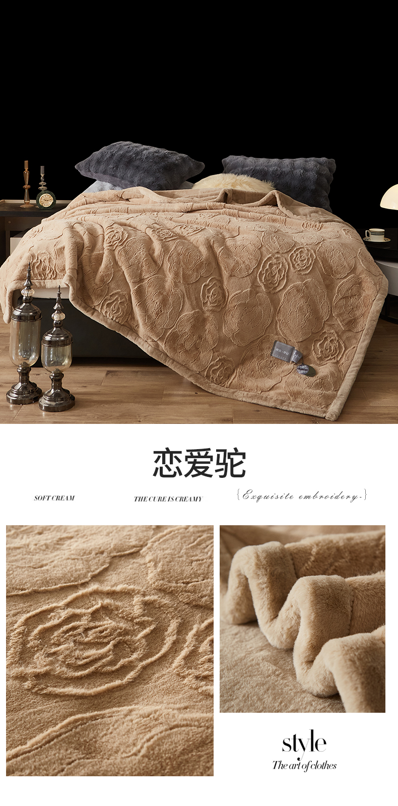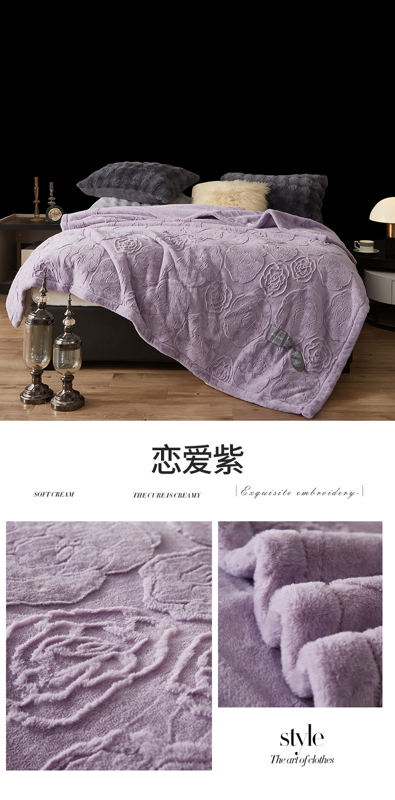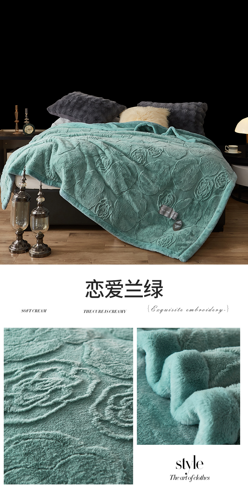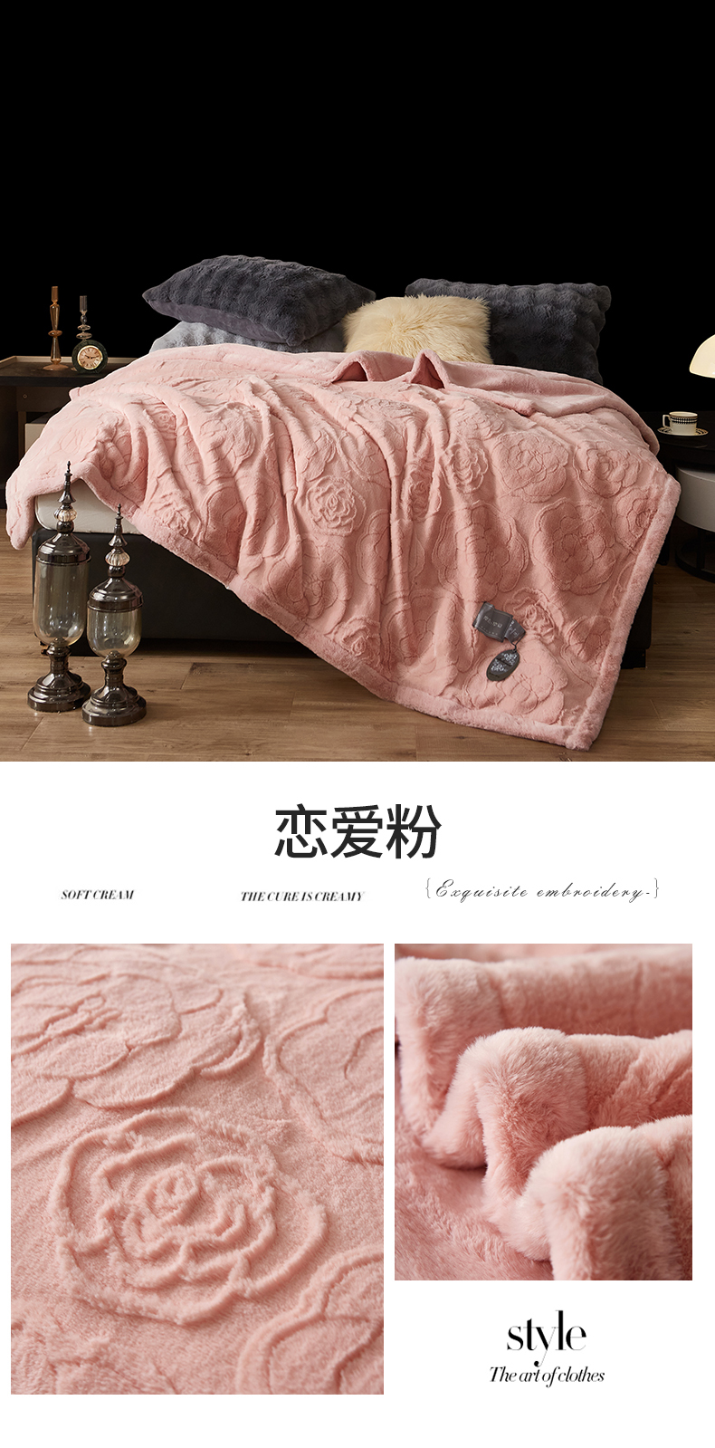 (总)凯轩毛毯网销专供 2026新款仿刺绣双层加厚压花云毯,豆沙红,绛紫色,孔雀绿,奶油咖,珊瑚粉,深灰色