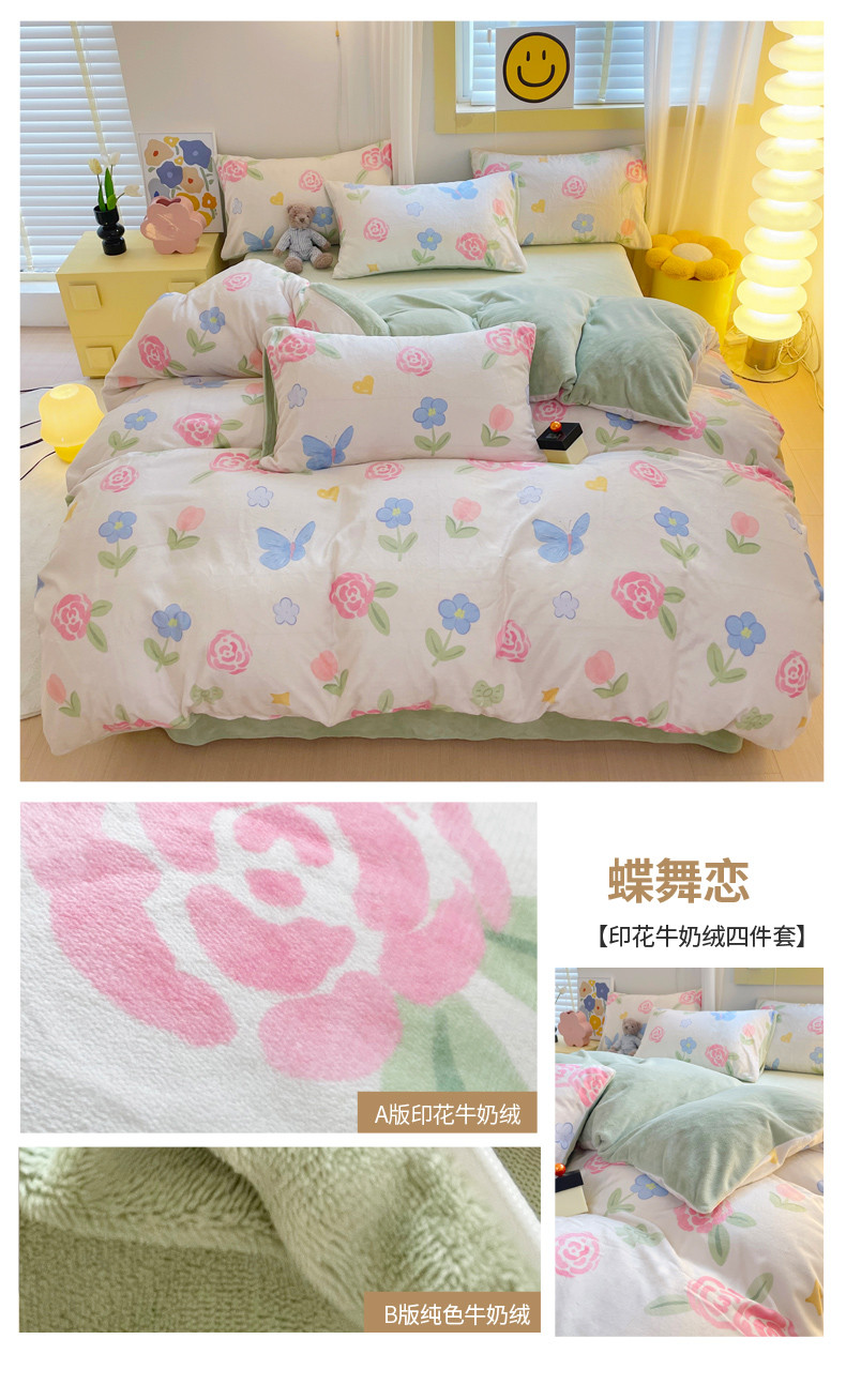当前位置: 91家纺网 > 商品网购 > 床品套件 > 四件套 > 牛奶绒四件套 > 梦柏家纺 2023新款高克重牛奶绒印花四件套 蝶舞恋