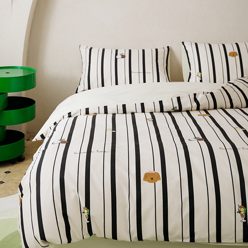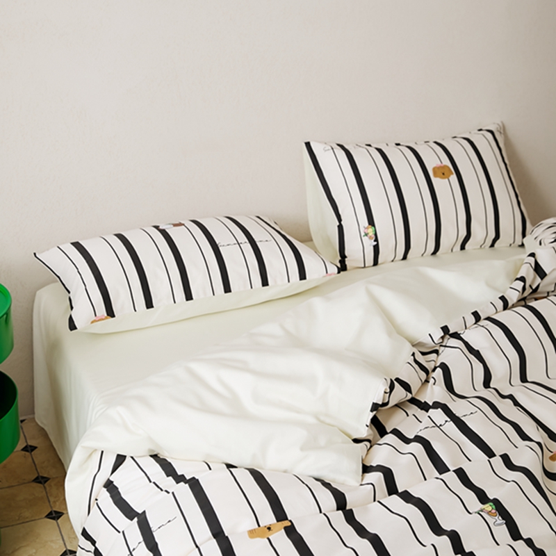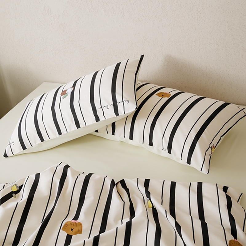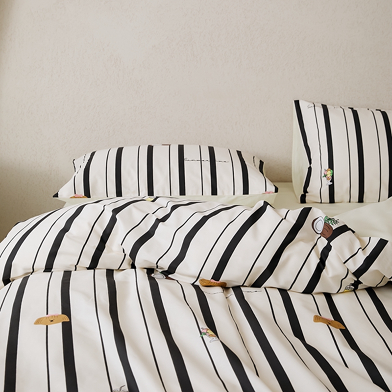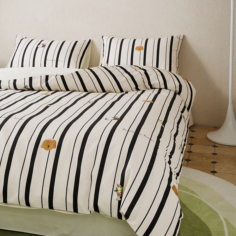 (总)原研家居 2023新款40支全棉13070印花四件套-野兽派系列,樱桃猫,公主猫,波浪猫,黑乖,蓝条狗,小花狗,竹叶熊,水果茶,波点苹果,生椰冰淇凌,青春