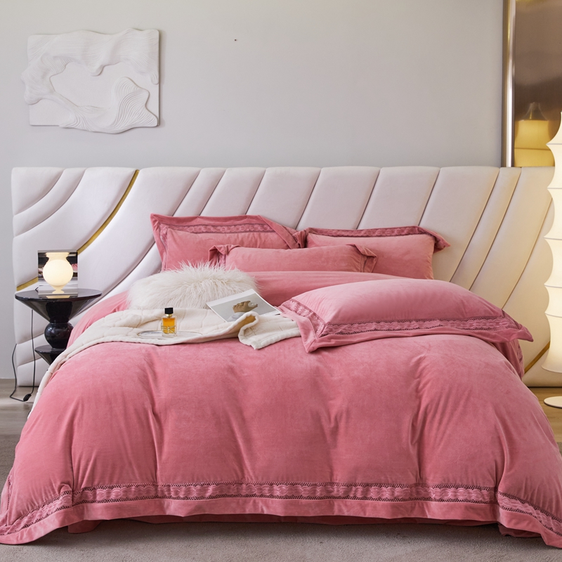 (总)时亿 2023新款加厚保暖獭兔绒四件套,抹茶绿,肉肉粉