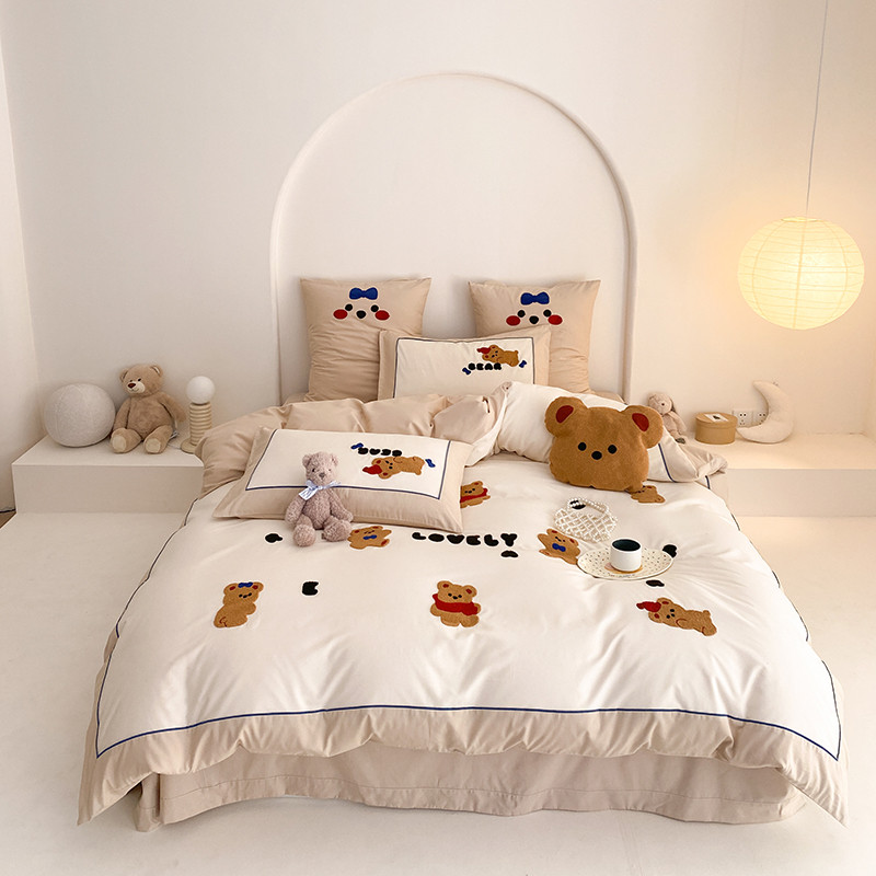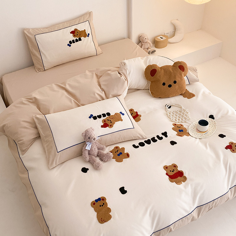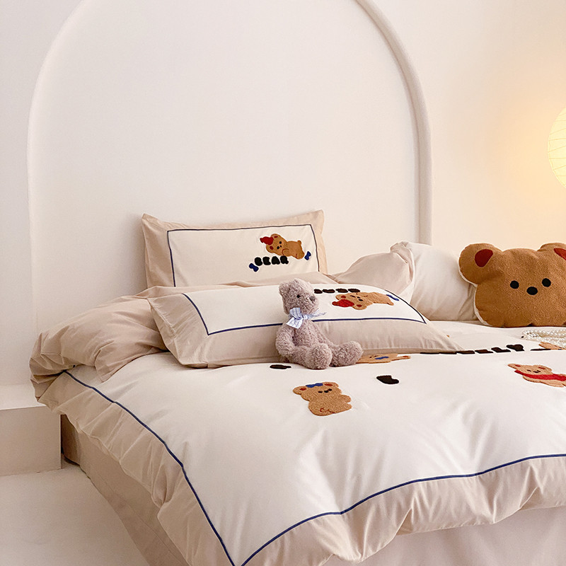 商品名称:MIU缪家居 2023新款100支全棉磨毛系列四件套-曲奇熊 曲奇熊浅驼色