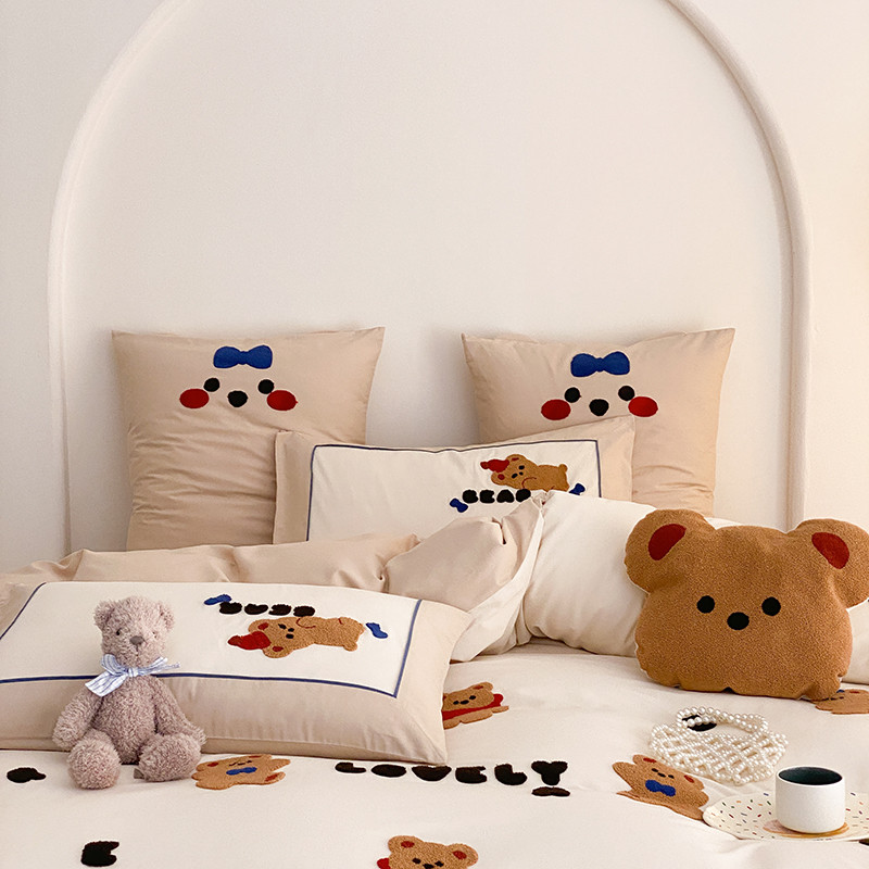MIU缪家居 2023新款100支全棉磨毛系列四件套-曲奇熊 曲奇熊浅驼色