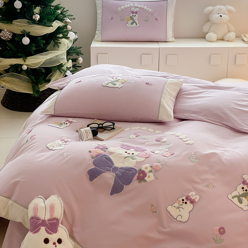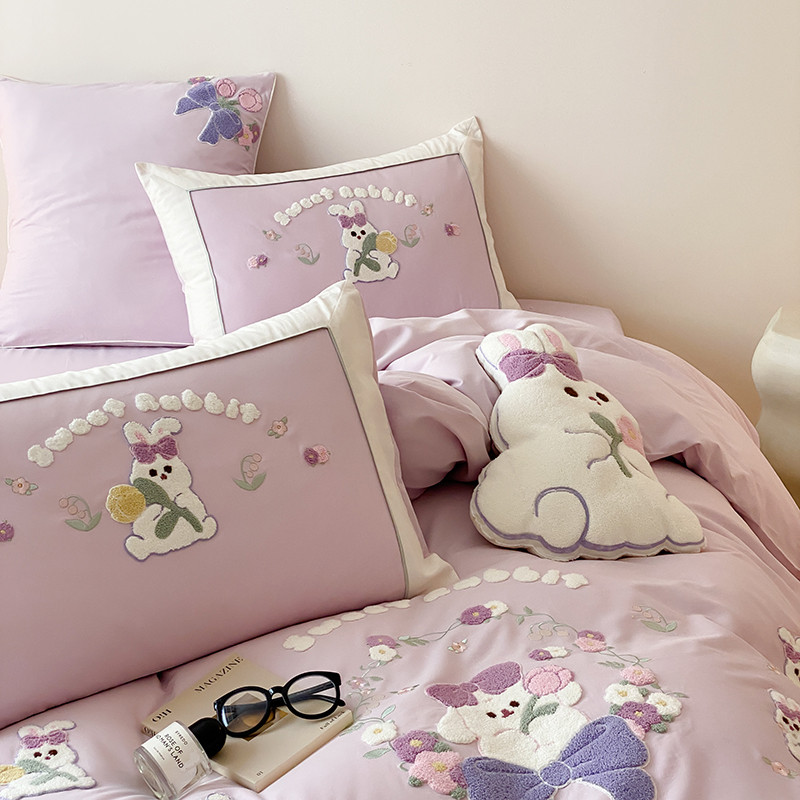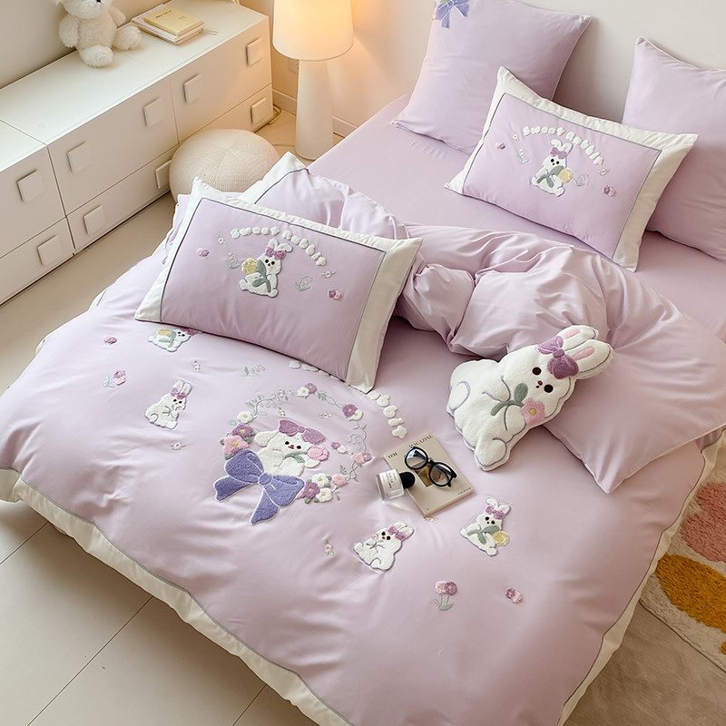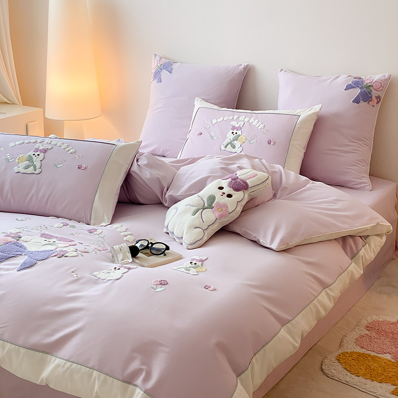 MIU缪家居 2023新款100支全棉磨毛系列四件套-花园宝宝 花园宝宝香芋紫