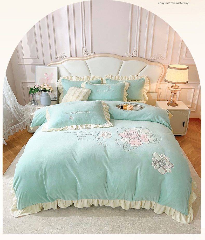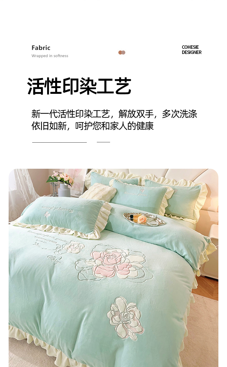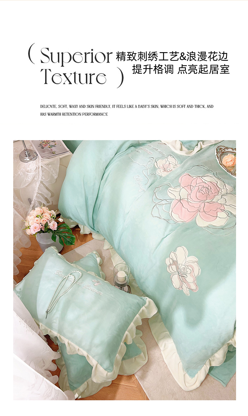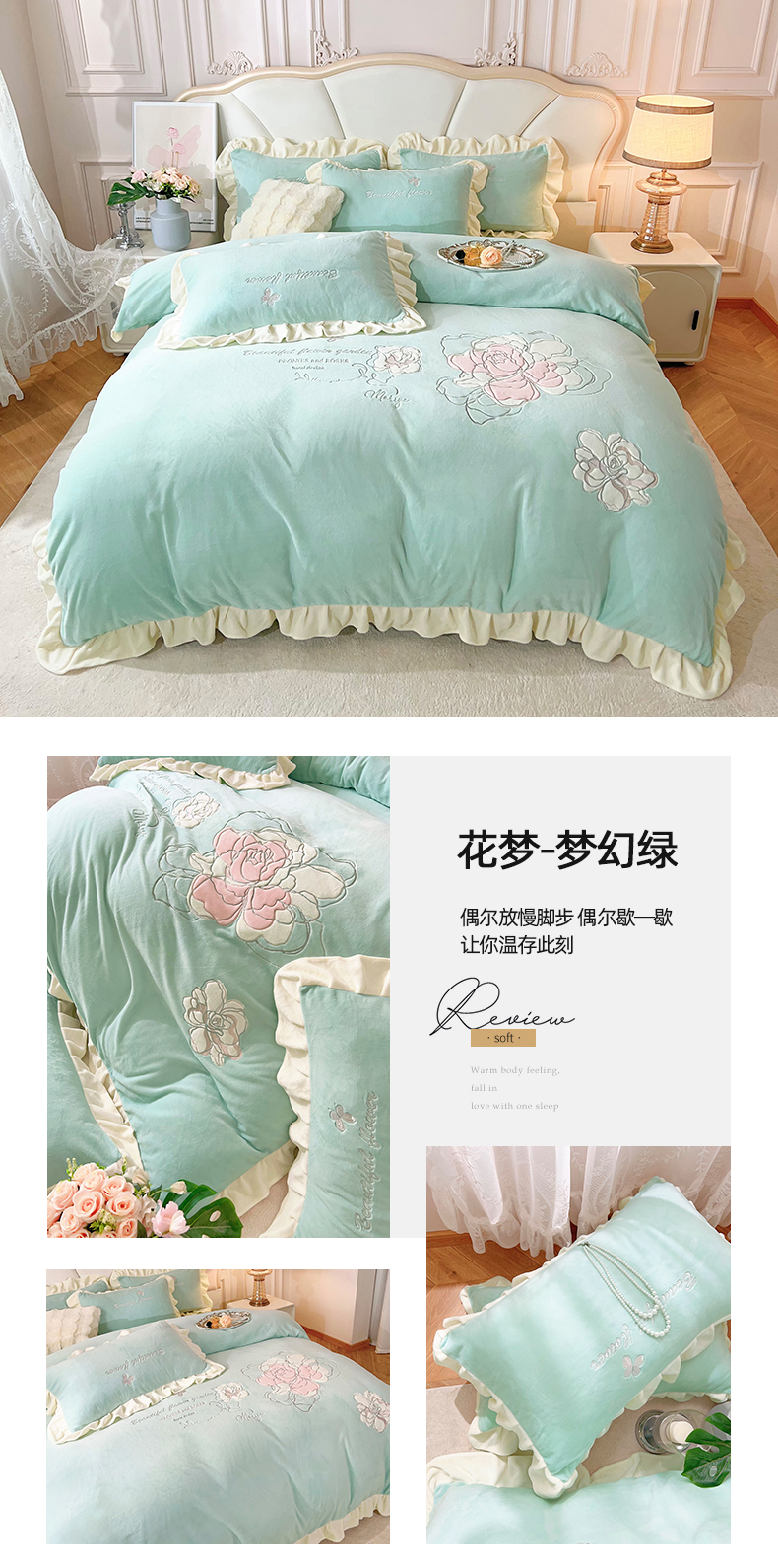 云锦家居 2023秋冬新品花梦--230克全消光牛奶绒四件套 花梦-梦幻绿