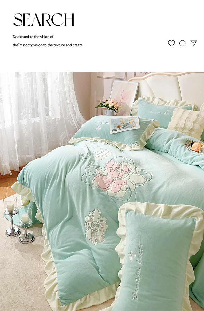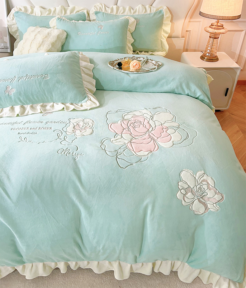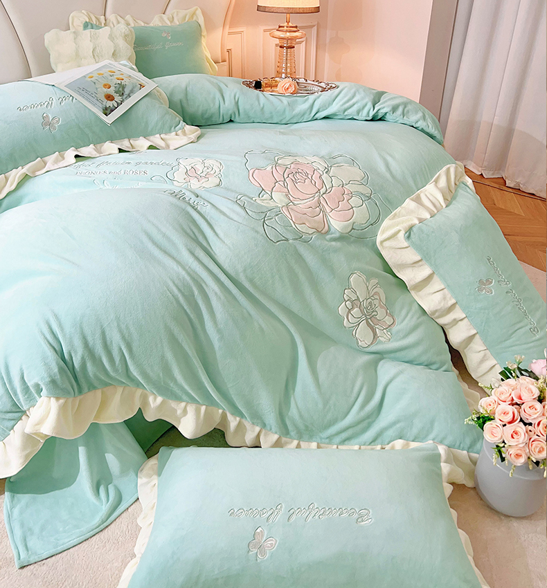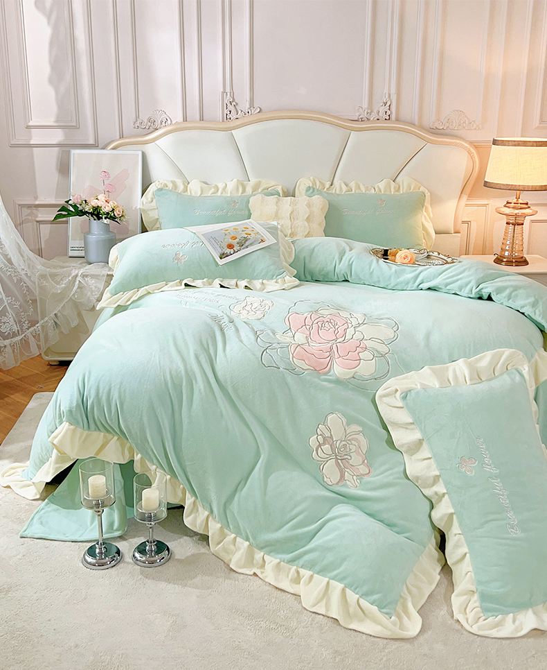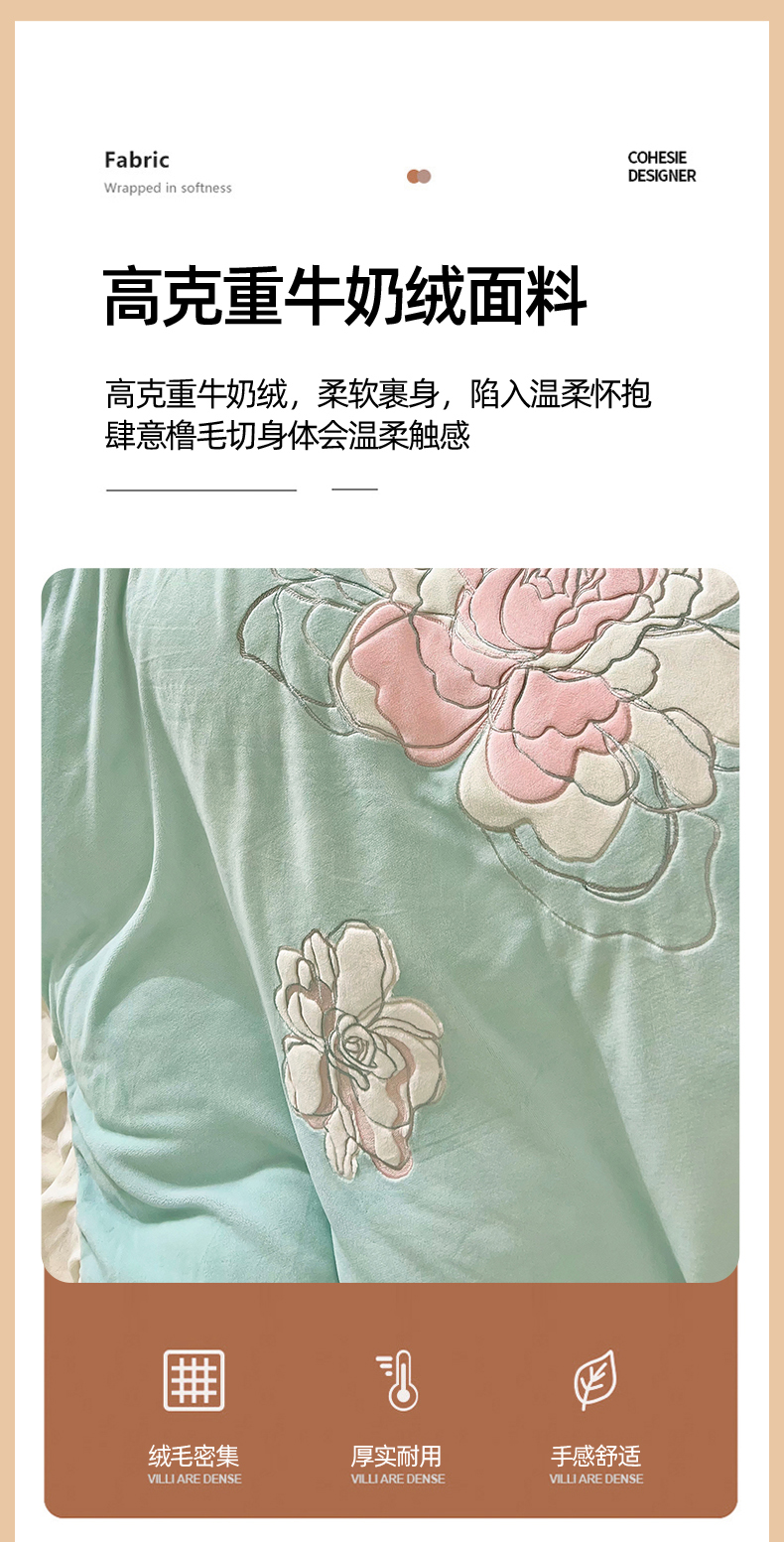 云锦家居 2023秋冬新品花梦--230克全消光牛奶绒四件套 花梦-梦幻绿