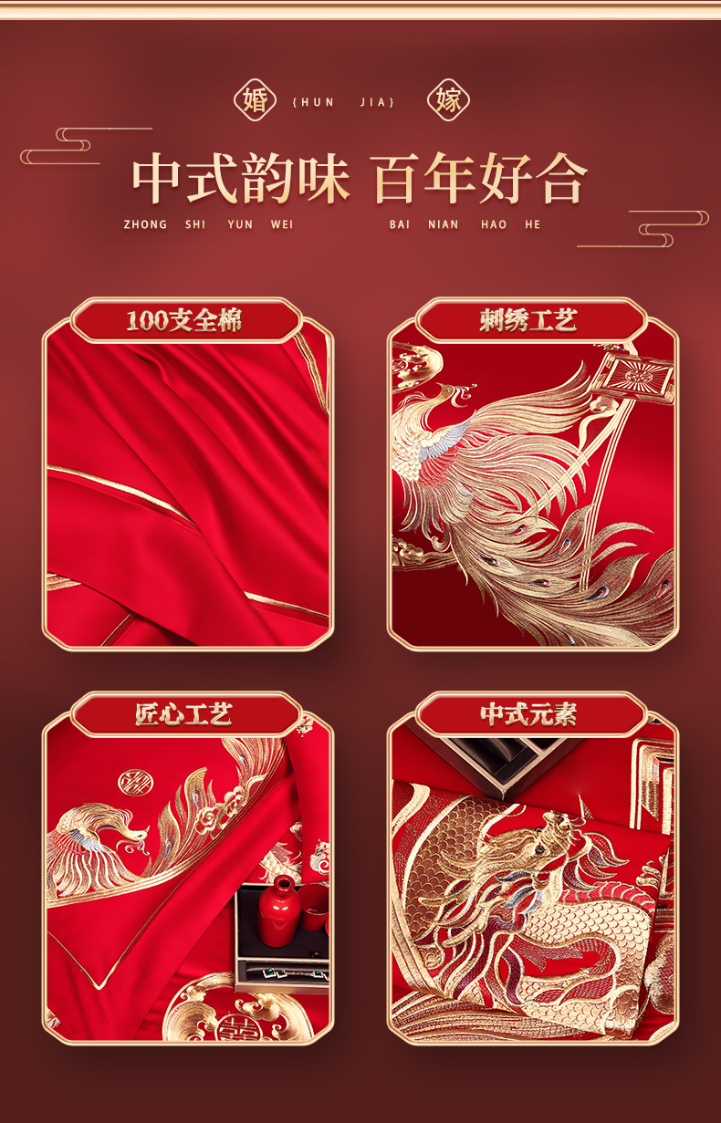 (总)皇潮婚庆馆 2025新款A类布款全棉刺绣婚庆四件套系列,花辰喜盈,百子送喜,龙悦凤鸣,喜事连连,喜迎鸿运