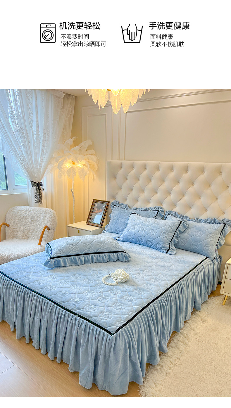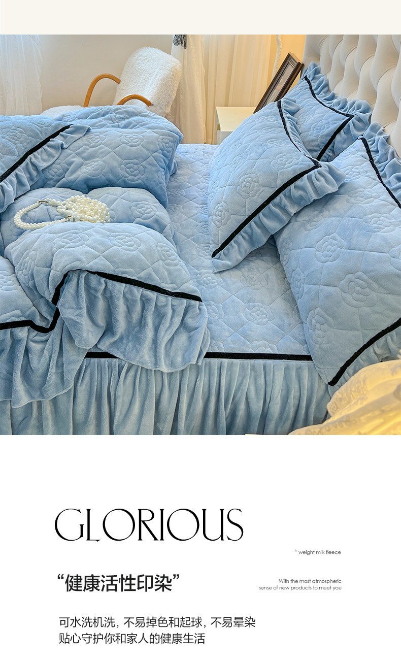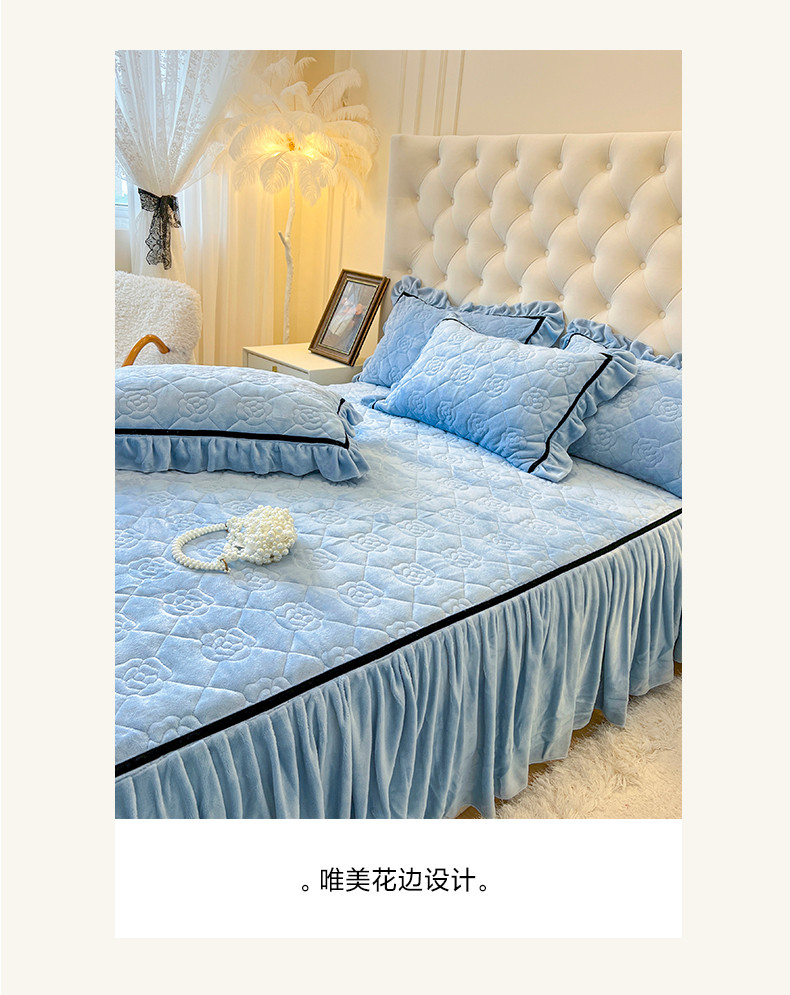 商品名称:网红馆 2025新款高克重加厚保暖牛奶绒眷恋系列单床裙 眷恋-天空蓝