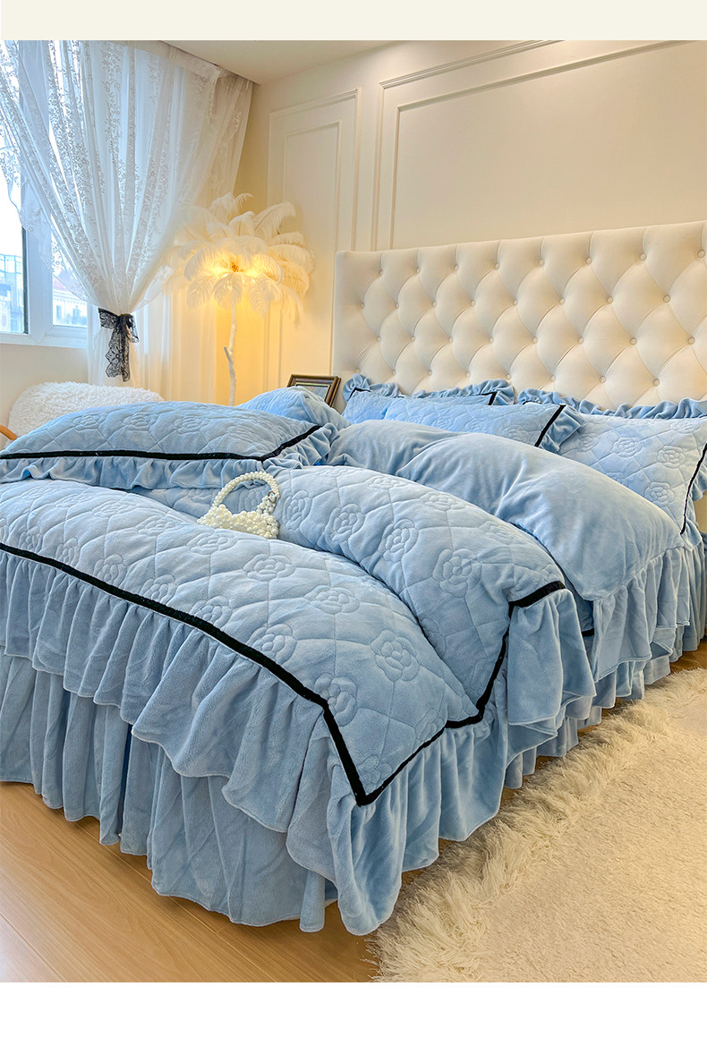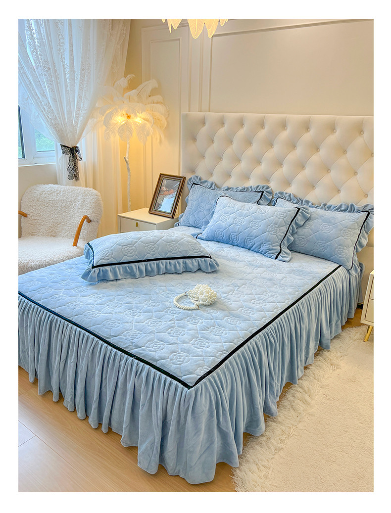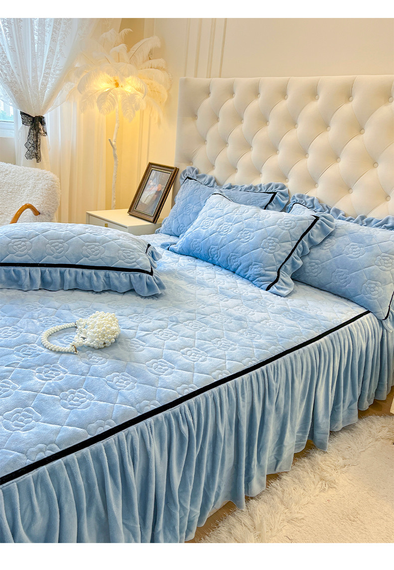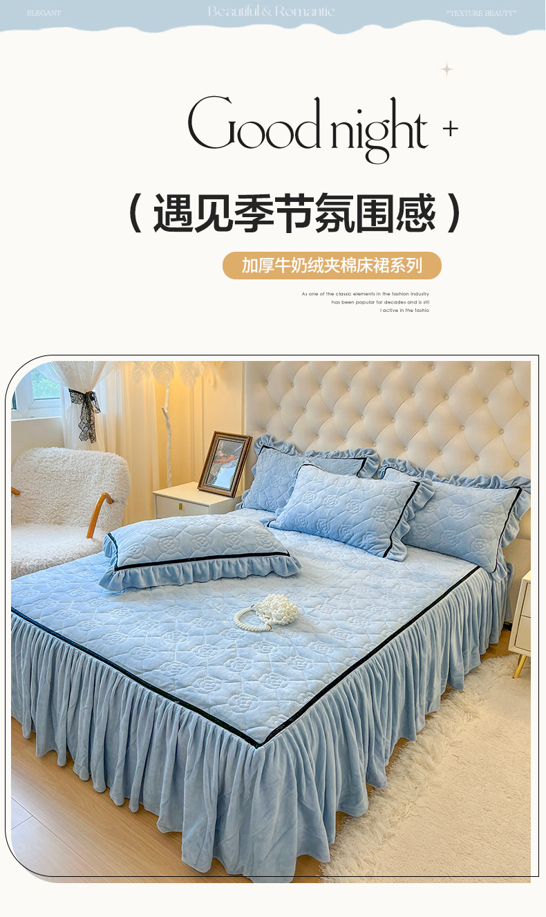 商品名称:网红馆 2025新款高克重加厚保暖牛奶绒眷恋系列单床裙 眷恋-天空蓝