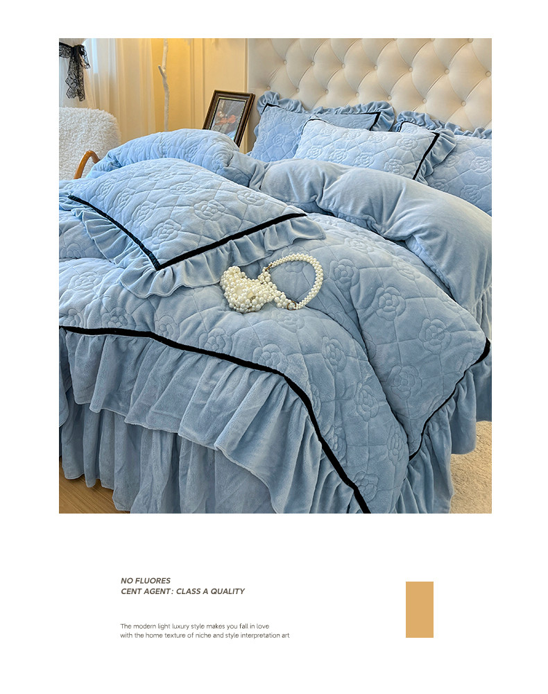 网红馆 2025新款高克重加厚保暖牛奶绒眷恋系列单床裙 眷恋-天空蓝