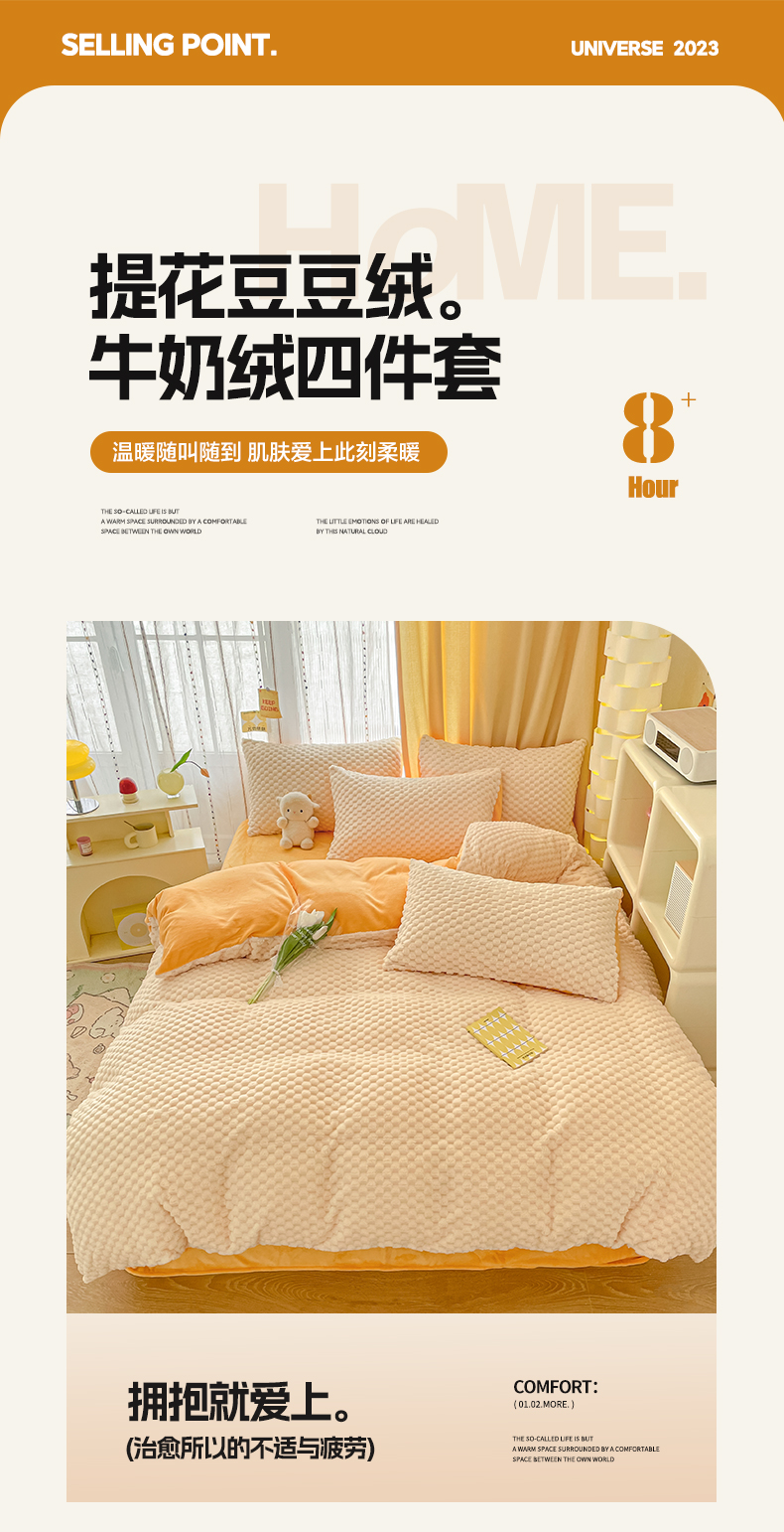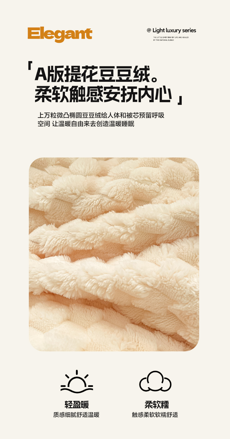 商品名称:如一 2023新款提花豆豆牛奶绒高克重金龟绒珊瑚绒法莱绒四件套-风格二 豆豆白橘