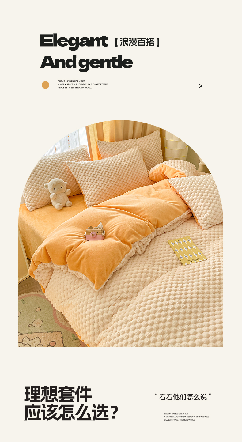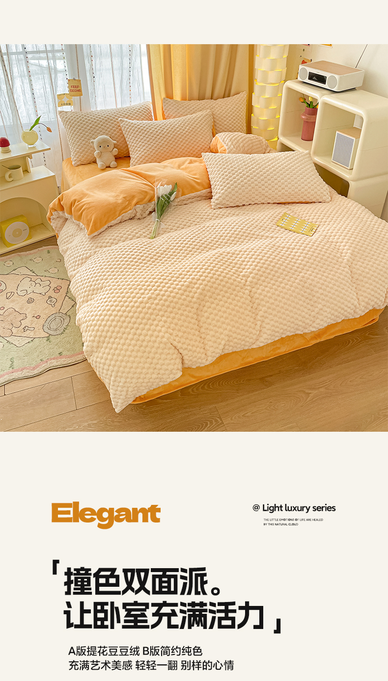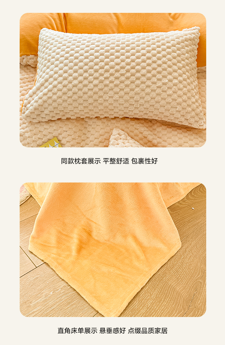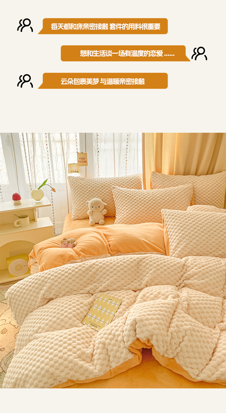 如一 2023新款提花豆豆牛奶绒高克重金龟绒珊瑚绒法莱绒四件套-风格二 豆豆白橘