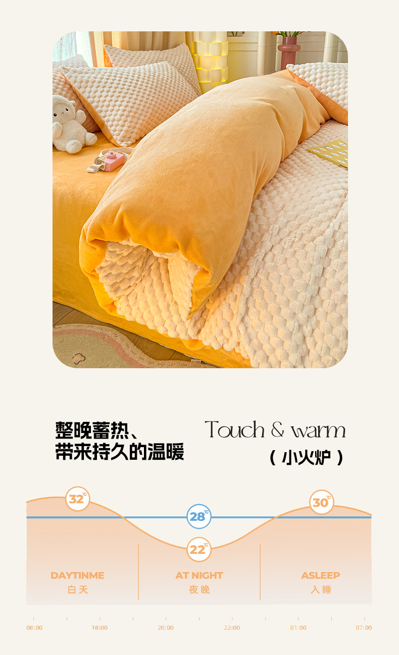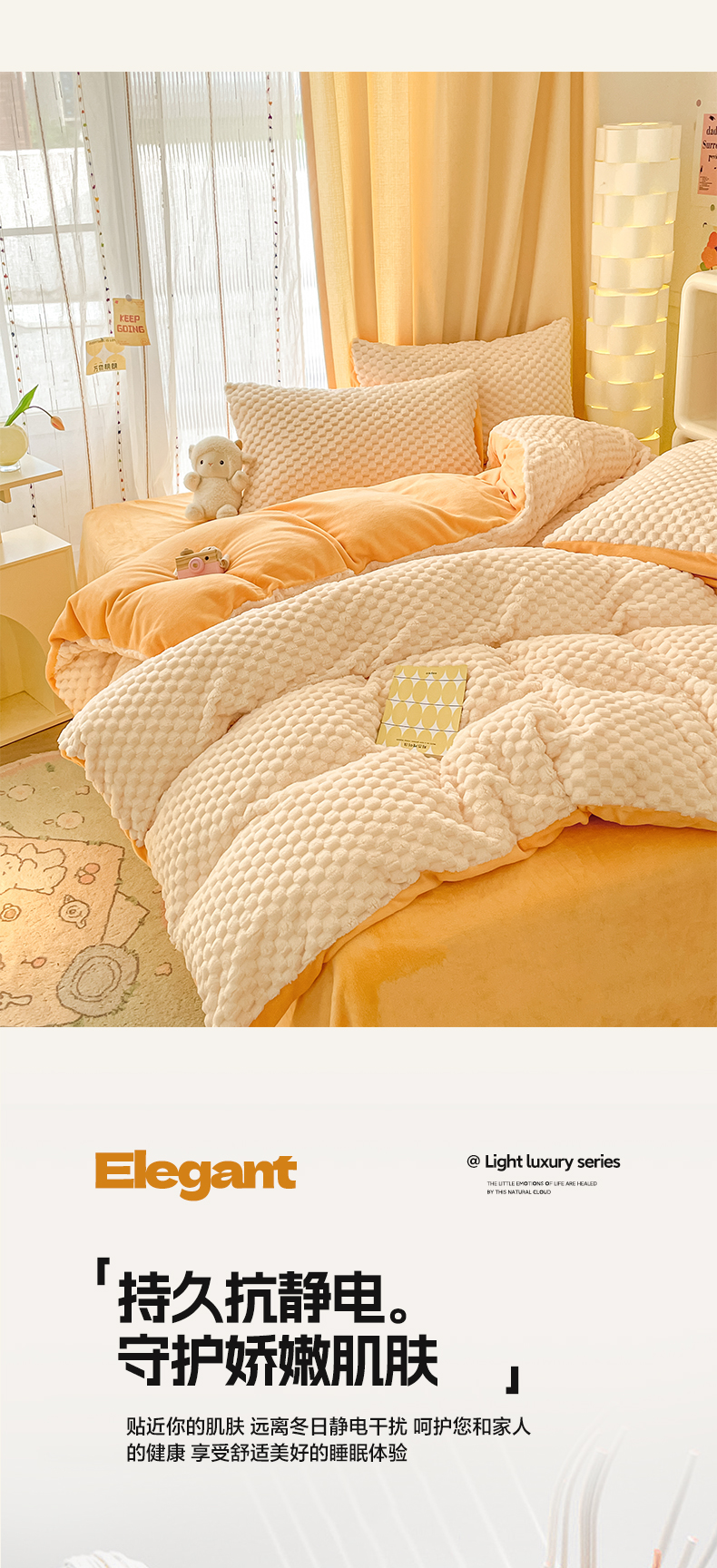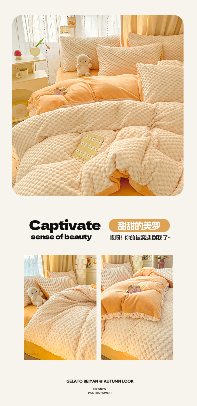如一 2023新款提花豆豆牛奶绒高克重金龟绒珊瑚绒法莱绒四件套-风格二 豆豆白橘