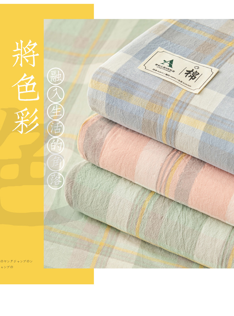 (总)21度C 2025新款色织全棉夏被四件套,可可灰,可可兰,蓝小格,沐妍黄,沐妍灰,雅格蓝,雅格绿,洋气红,洋气咖