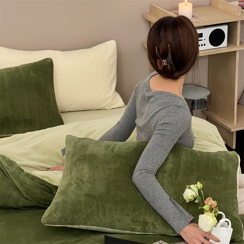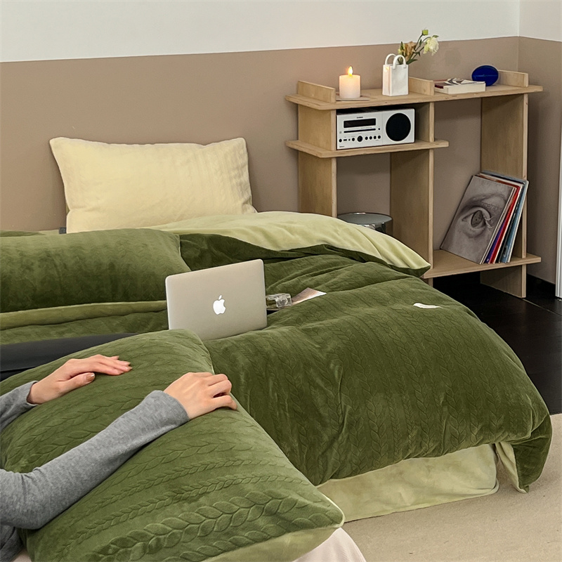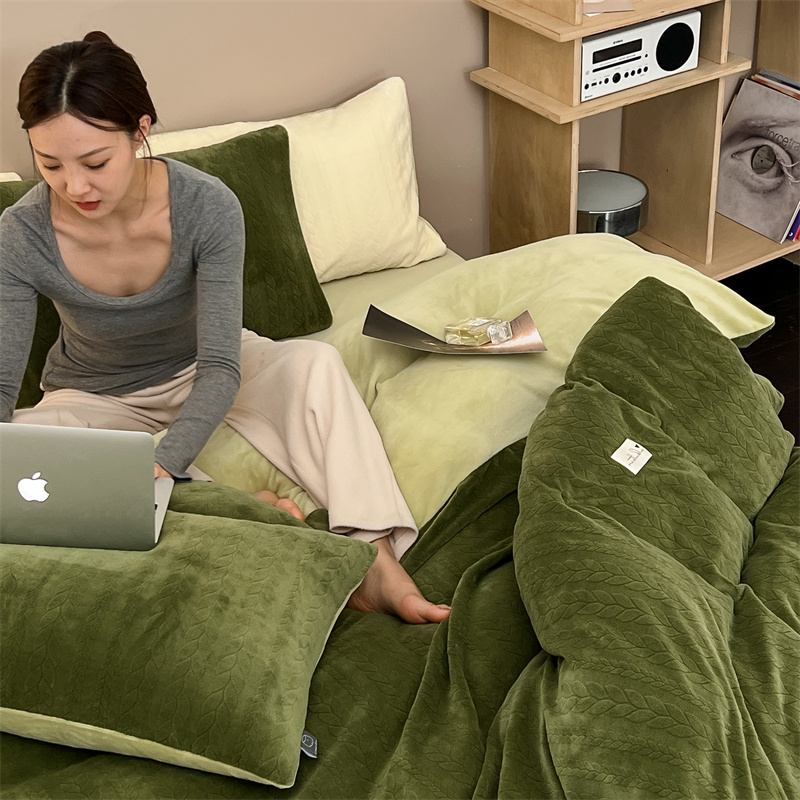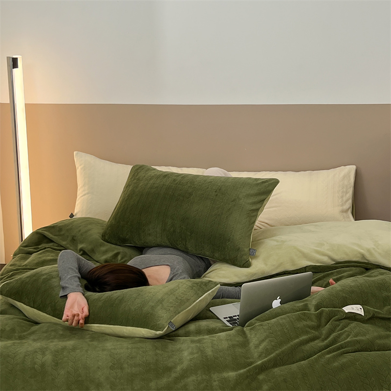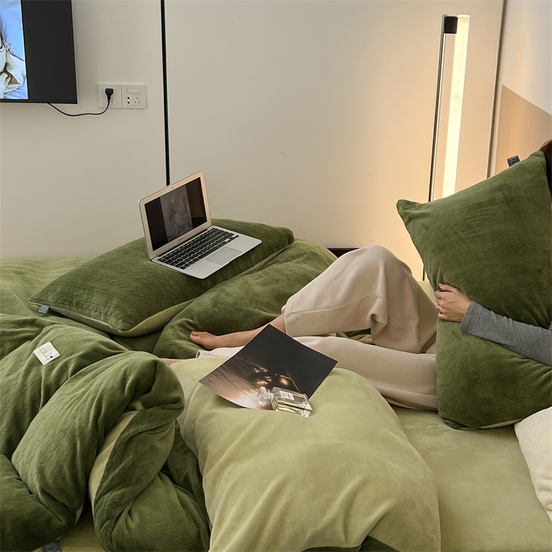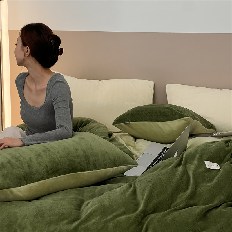 玉宇阁 2023新款日暮高克重牛奶绒四件套 冰岛苔原